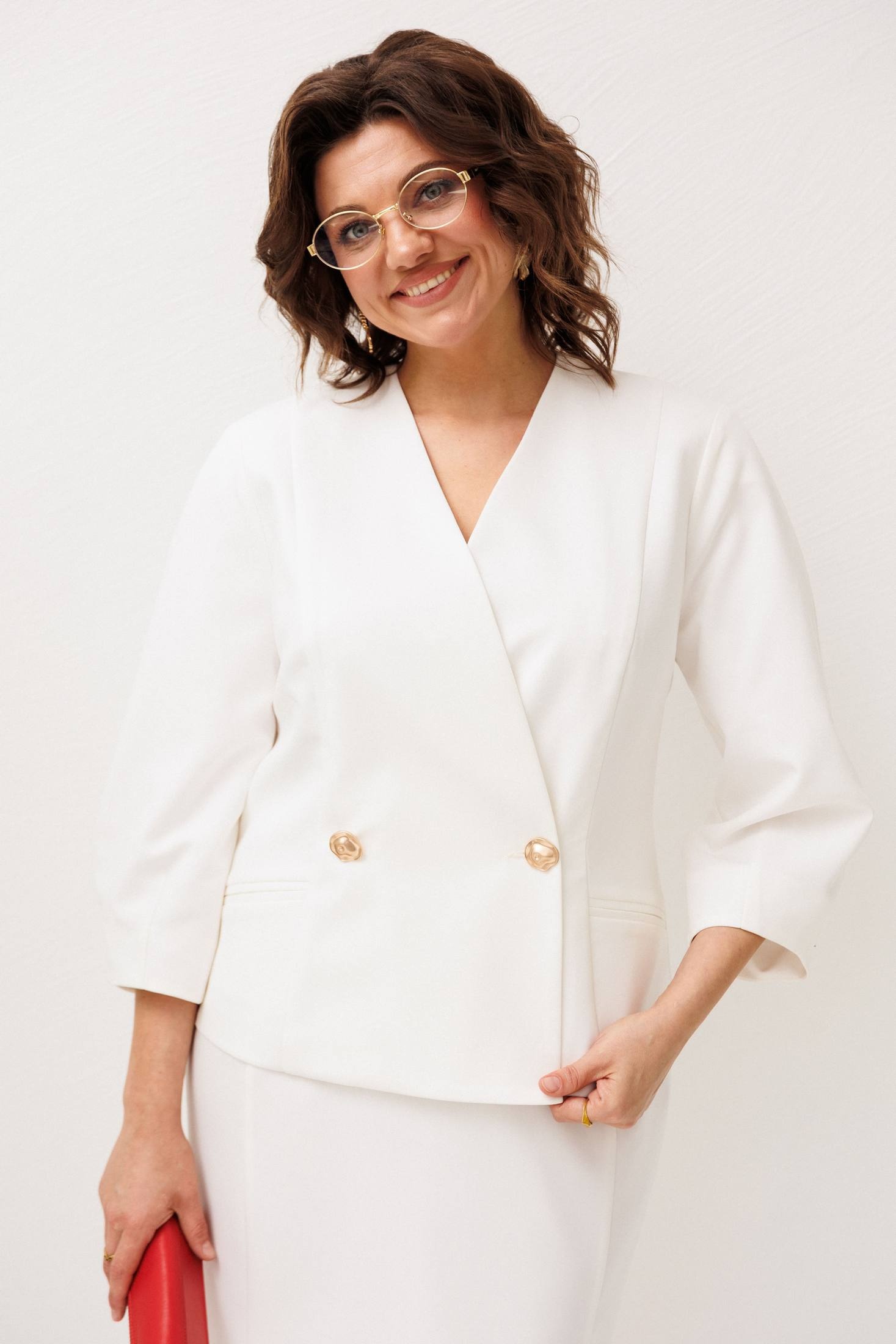 Костюм с юбкой 1844 лебедь Anelli — изысканный комплект для современной женщины. Коллекция бренда Anelli сочетает в себе мягкость вискозы и прочность полиэстера, обеспечивая комфорт и износостойкость. Жакет полуприлегающего силуэта и юбка с рельефами создают гармоничный и благородный образ. Золотые пуговицы на жакете добавляют утонченности, а V-образный вырез подчёркивает изящность. Юбка оснащена мягким поясом с резинкой, обеспечивая свободу движений. Подкладка из полиэстера делает костюм приятным в носке. Легкий "лебединый" оттенок и стильный дизайн подходят для весенне-летнего сезона, идеальны для рабочих встреч и городских прогулок. Этот костюм — универсальная часть гардероба, легко сочетаемая с другими вещами.
