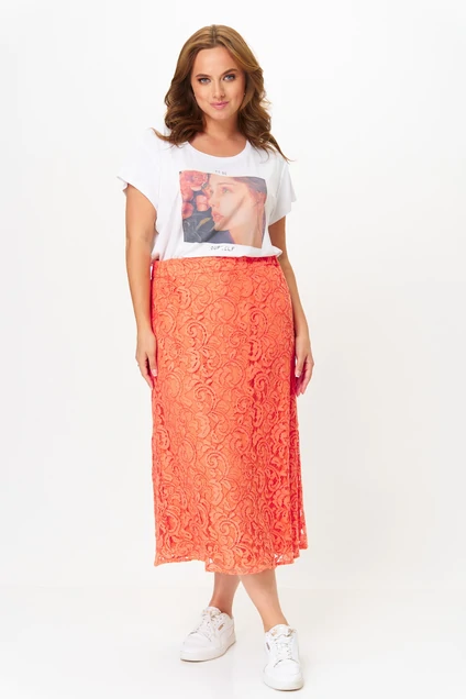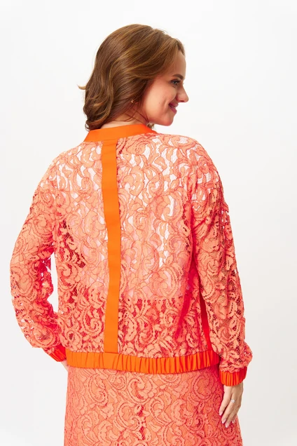 Комплект женский состоит из бомбера, юбки и футболки .Бомбер женский скомбинирован из текстиля гипюра , отлично подойдет для торжественных случаев и так же для летних прогулок . Застежка центральная на металлическую молнию . Спереди прорезные карманы в рамку с втачной листочкой и отделочной строчкой по контуру мешковины . Юбка женская из гипюра для повседневной носки и торжественных случаев . Юбка расширена к низу , длиной ниже колена . Застежка на потайную молнию и вставки из эластичной тесьмы по бокам пояса, подчеркивают линию талии . Футболка прямого кроя с втачными рукавом. По переду стойкая ,декоративная печать .