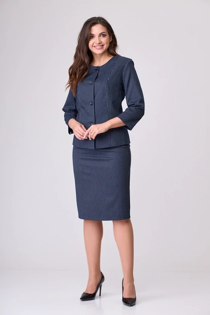 Костюм с юбкой 723+557 синяя полоска БелЭльСтиль