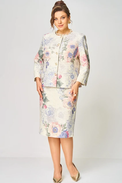 Костюм с юбкой 861+557 молочный твид БелЭльСтиль