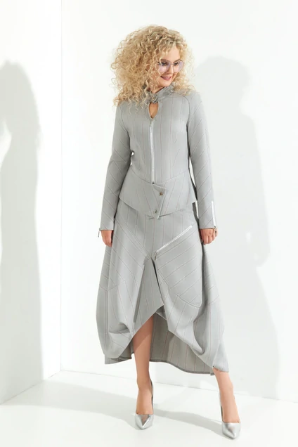 *Костюм с юбкой 372 серый + розовый+ люрекс Euro Moda