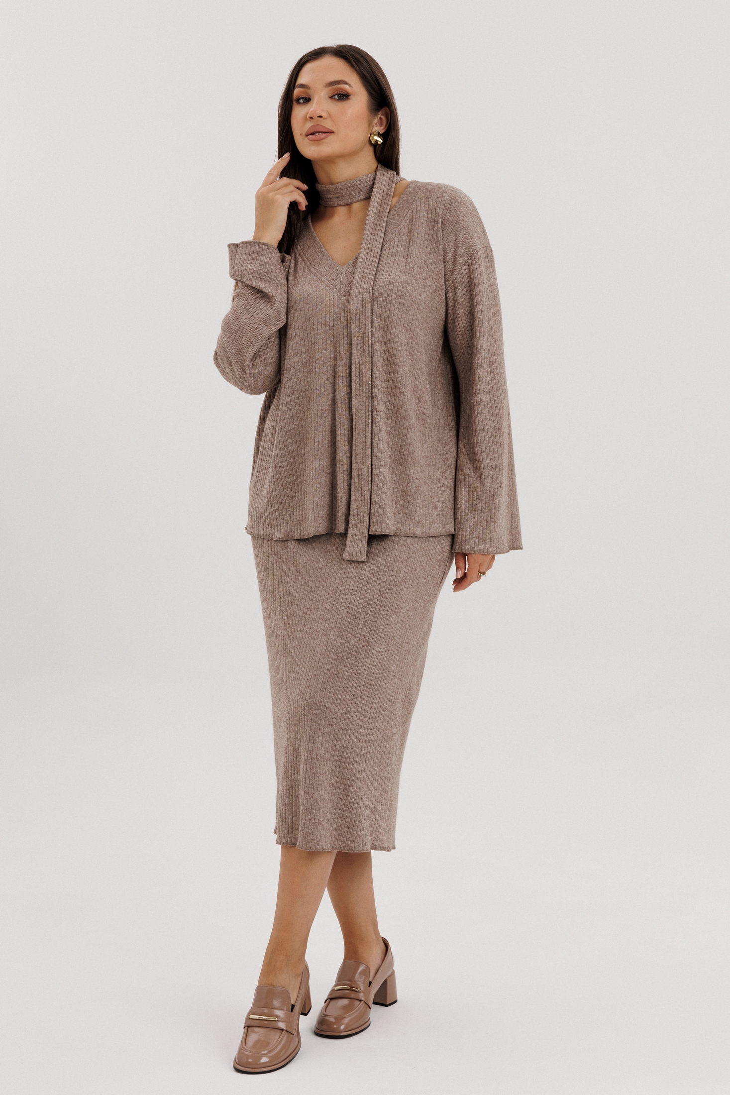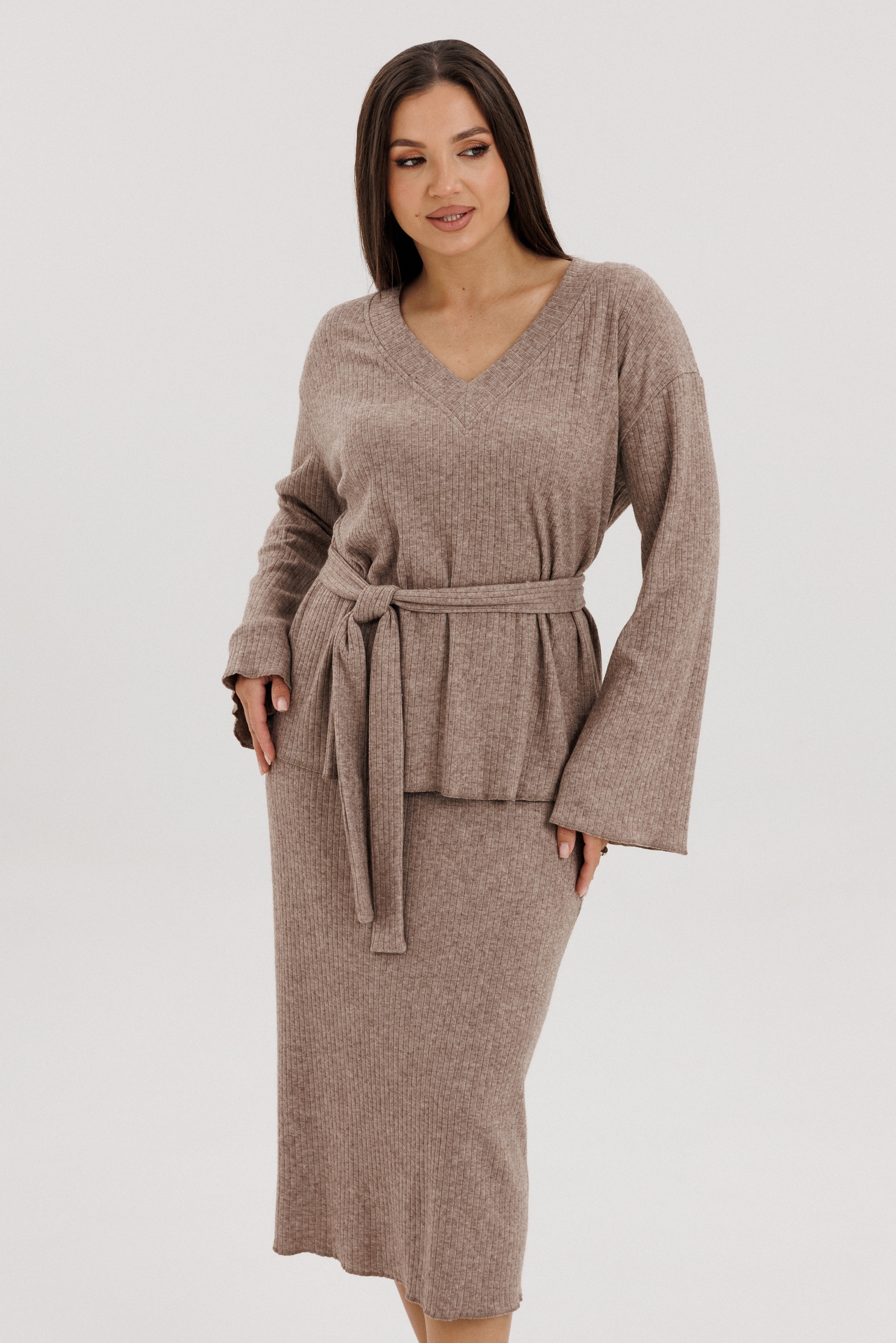 Длина джемпера около 67 см. Длина рукава с плечом около 74 см. Длина юбки около 75 см.