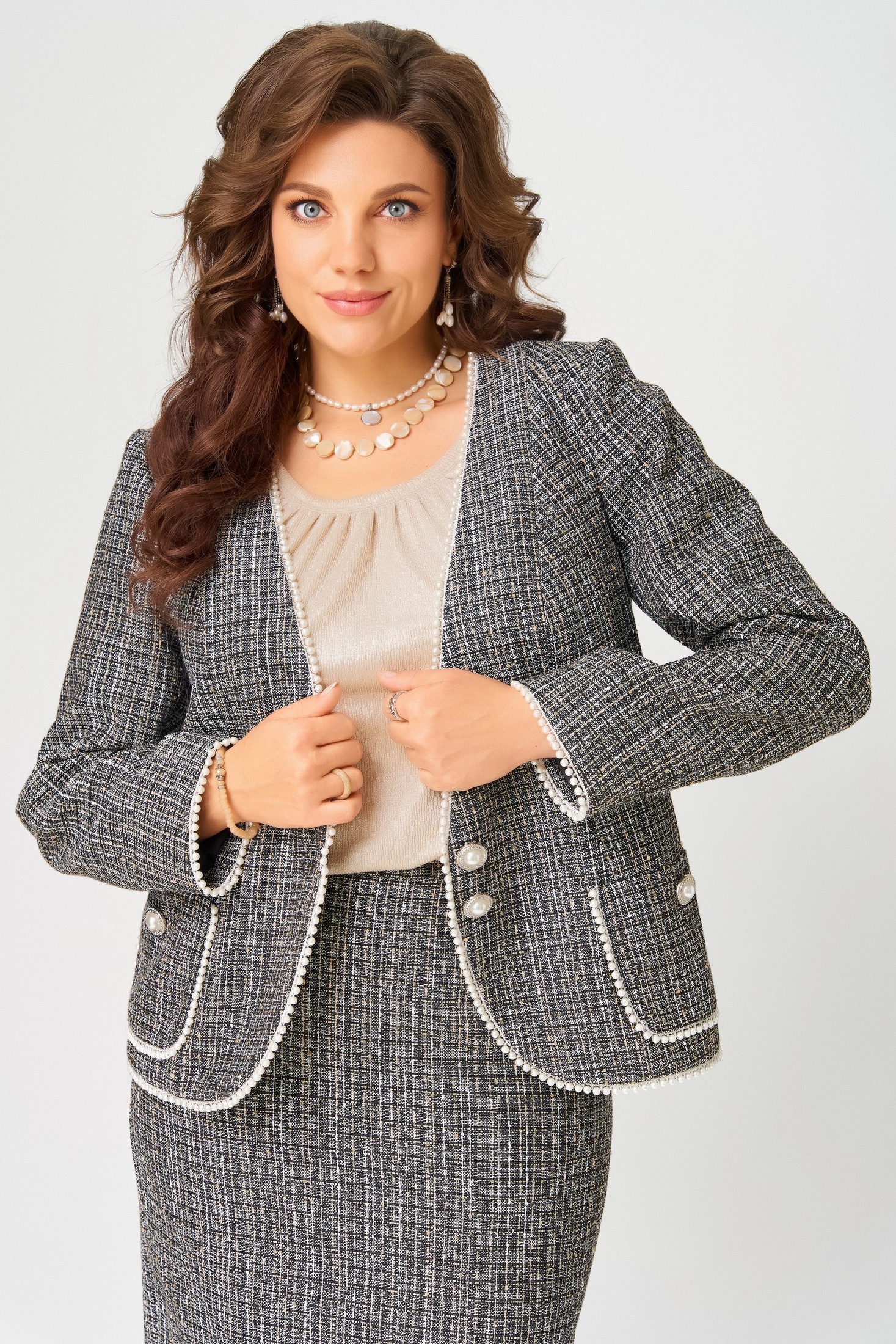 - Костюмы с юбкой бежевые