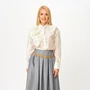 Комплект 2-х предметный. Блуза прямого покроя. Рукав реглан 3/4. Широкая горловина с воротником "стойкой". По спинке потайная молния (20см) в среднем шве. В боковых швах, по низу блузы маленькие разрезы. Юбка на подкладке, зауженного к низу силуэта. Карманы в боковых швах с отрезным бочком. Пояс застегивается на петлю-пуговицу. Потайная молния и шлица в среднем шве заднего полотнища. Ремень входит в комплект, по дизайну может отличаться от фото в разных партиях. длина жакета 59см, длина рукава 47см, длина юбки 60см
