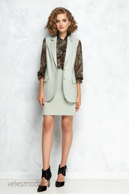 Длина блузки-58см, длина рукава-62см, длина жилета-73см, длина юбки-47-50см