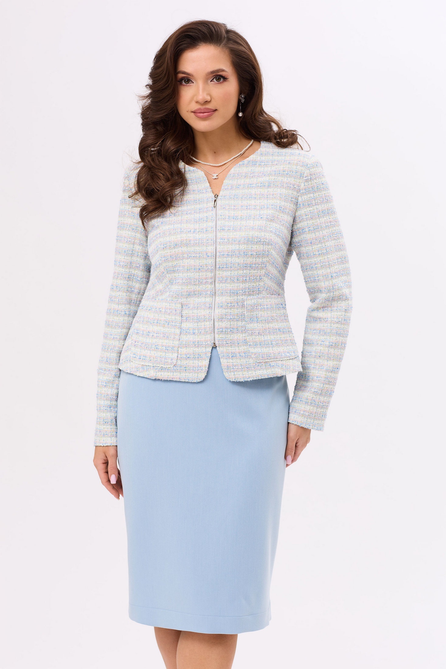 Костюм с юбкой 6761 Golden Valley — это идеальное сочетание стиля и комфорта. Коллекция бренда Golden Valley предлагает костюм из трикотажной ткани, которая обеспечивает легкость движения. Жакет с центральной застежкой на молнию и фигурным вырезом горловины подчеркивает вашу индивидуальность, а накладные карманы добавляют функциональности. Длинный втачной рукав и полуприлегающий силуэт создают классический образ. Юбка без пояса с шлицей на заднем полотнище и обработанными обтачками добавляет женственности и элегантности вашему взгляду. Цветовая гамма выдержана в тон основной ткани, что придает завершенность комплекту. Этот костюм идеально подходит для офисного стиля и может быть использован в любое время года благодаря своему универсальному дизайну.