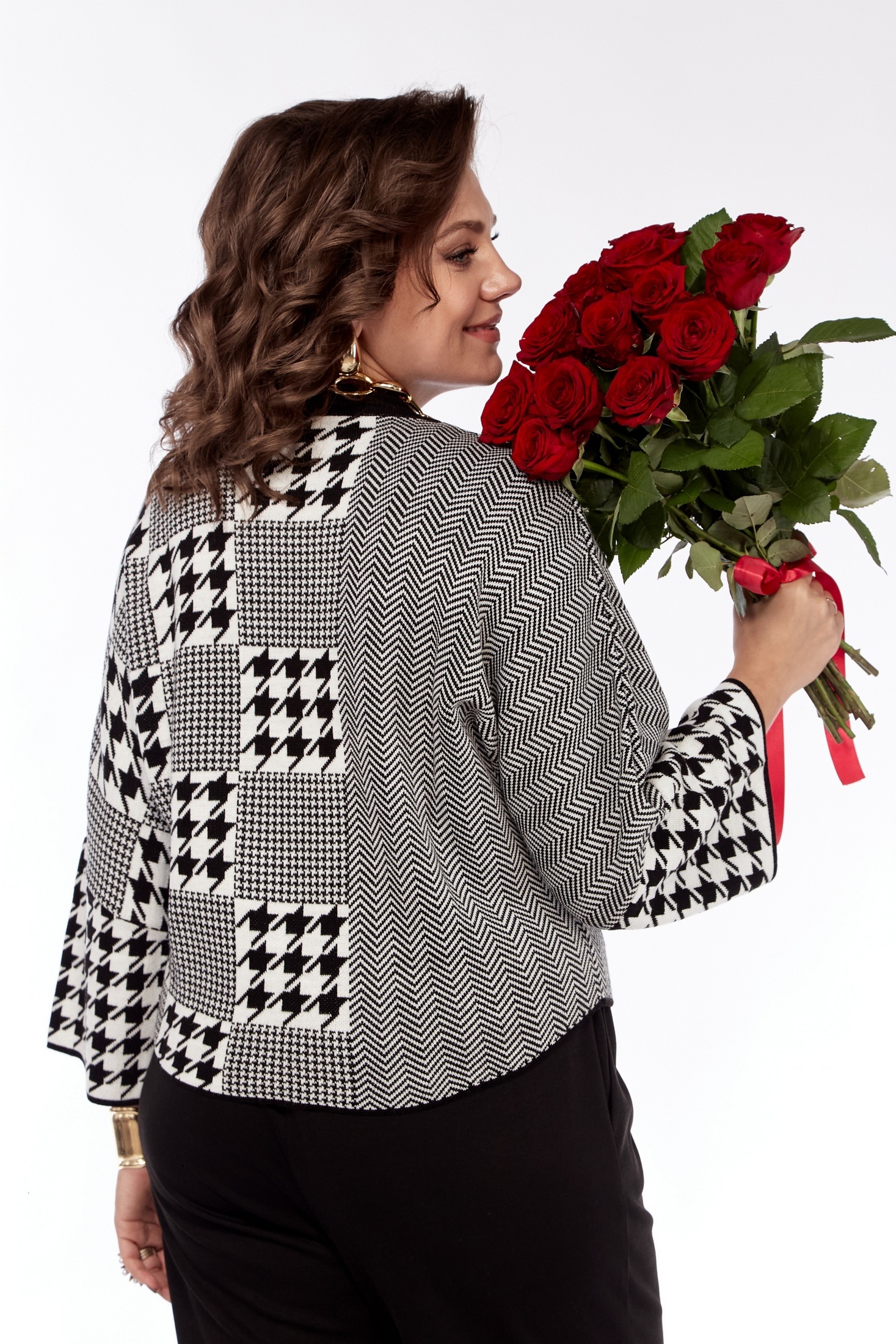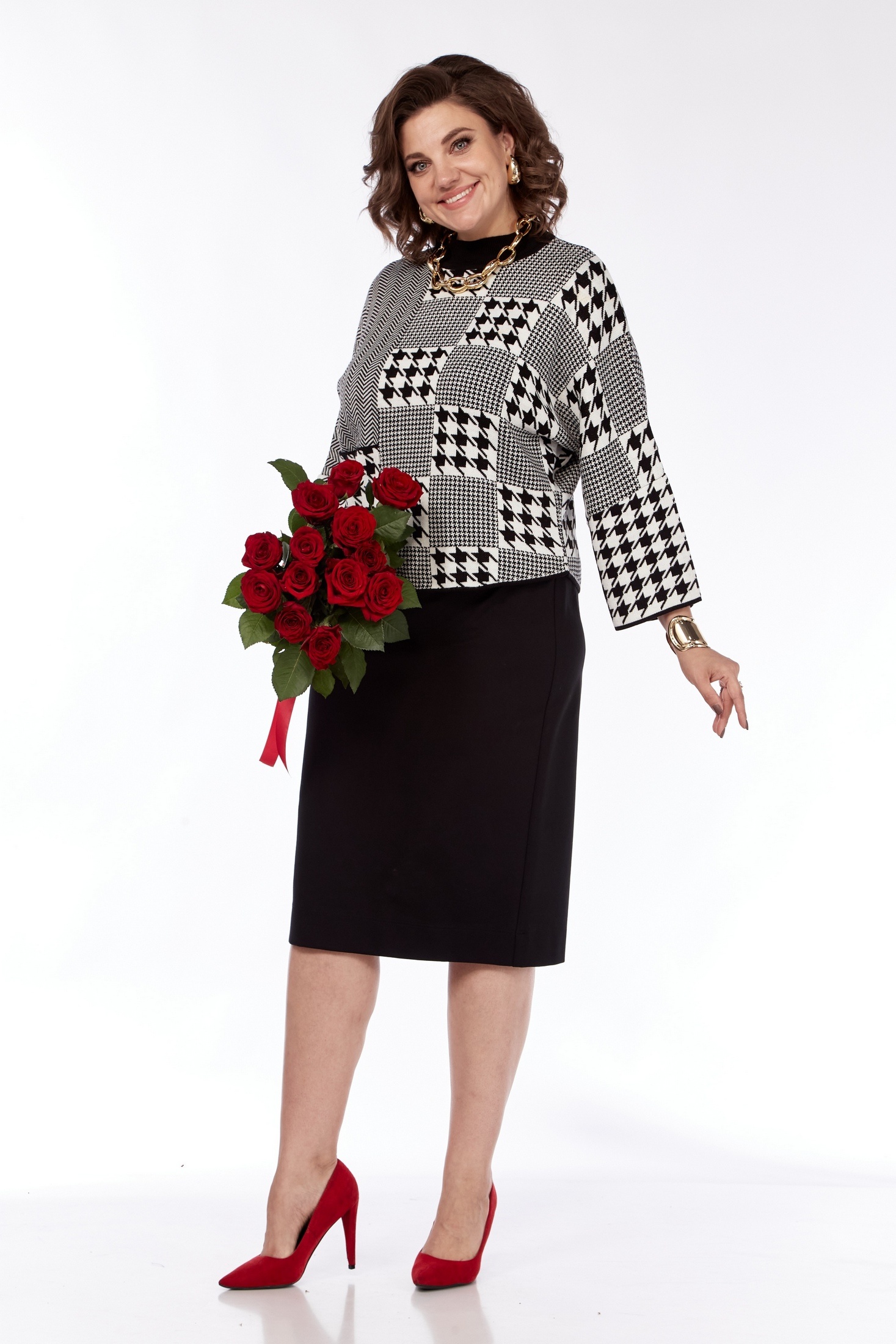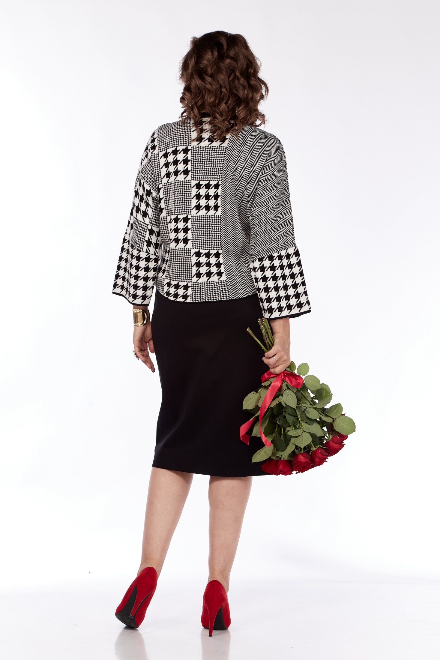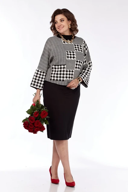 Теплый комплект женский состоящий из кофтыи юбки. Трикотажная кофта прямого силуэта, ОВЕРСАЙЗ, со спущенным плечом. Перед кофты без нагрудных вытачек, слева внизу кофты по переду расположен карман. Горловина обработана воротником стойкой из трикотажной тесьмы. Рукав длиной ¾. Спинка кофты без среднего шва.