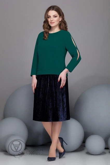 Костюм с юбкой 2432 зеленый Ивелта Плюс