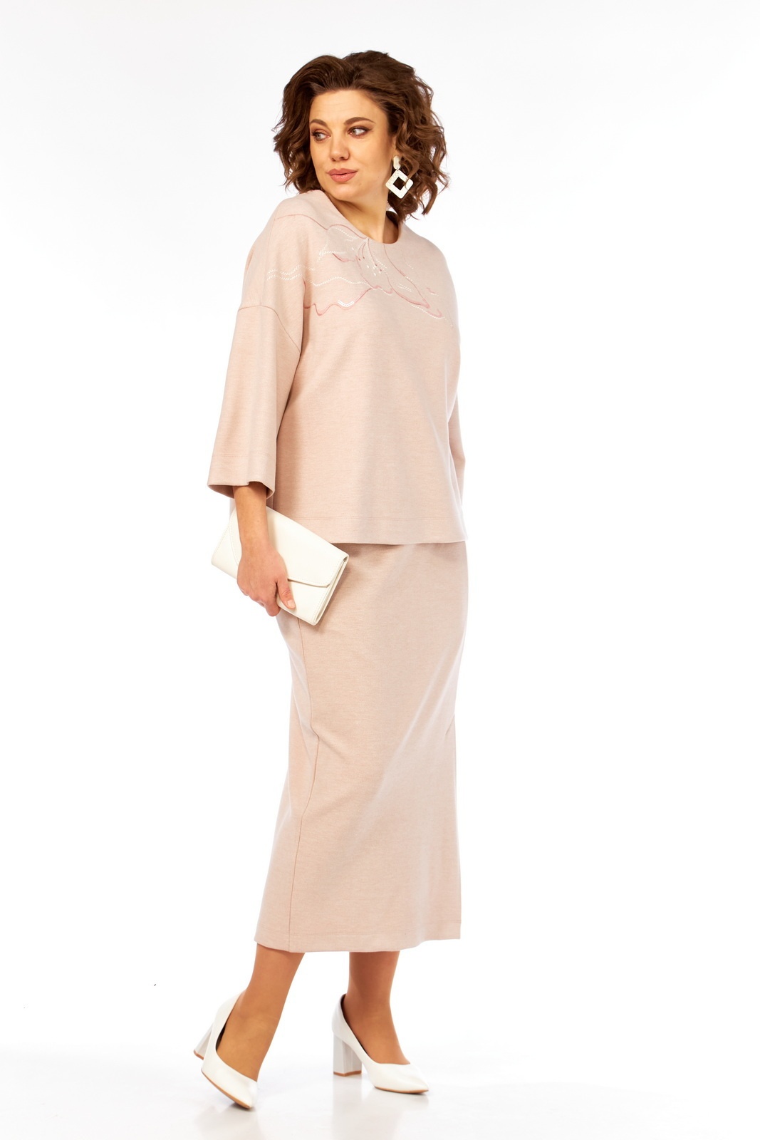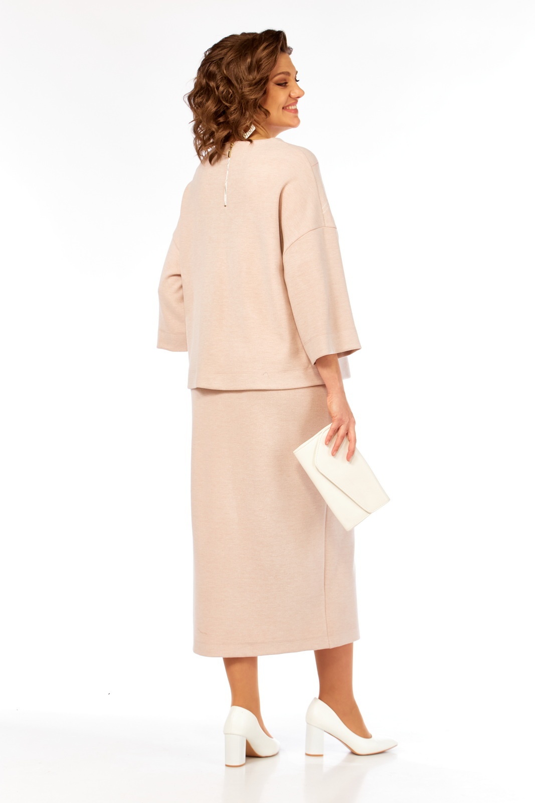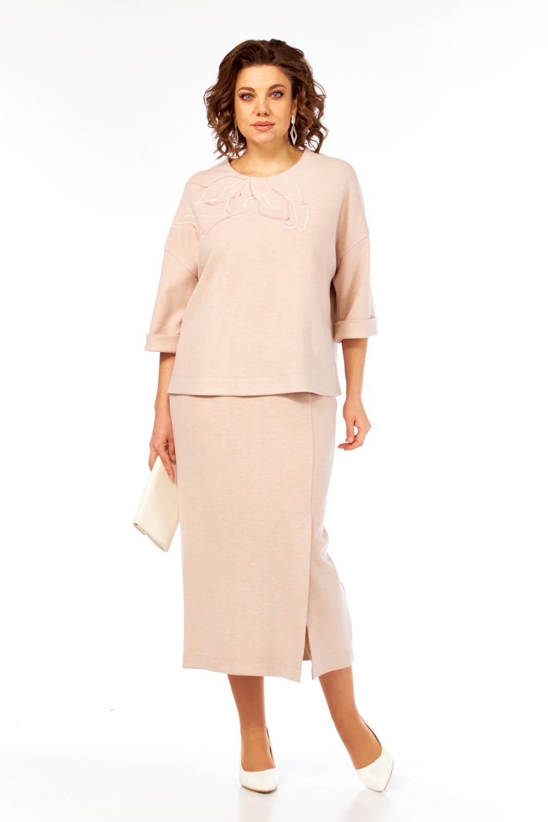 Костюм с юбкой 3466 Jurimex демонстрирует изысканный стиль, идеально подходящий для повседневного и нарядного образа. Коллекция бренда Jurimex, выполненная из трикотажного полотна с добавлением вискозы и полиэстера, гарантирует комфорт и долговечность. Джемпер прямого силуэта оригинально украшен дизайнерской вышивкой, а застежка с декоративной тесьмой-молнией придает ему уникальность. Спущенные рукава и цельнокроеный пояс на эластичной тесьме отличаются удобством. Юбка заужена к низу, оснащена шлицей и подкладкой для дополнительного комфорта. Приталенный фасон подчеркивает женственность, а молочный цвет добавляет нежности в палитру гардероба. Поддерживает как летний, так и межсезонный гардероб. Длина блузы по спинке составляет 60 см, а юбки — 89 см.