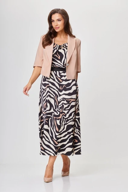 Жакет укороченный, силуэт прямой, застёжка на 1 петлю и пуговицу. Воротник пиджачный. Перед на подкладке. Спинка жакета со средним швом. Рукав втачной, длинной до локтя.