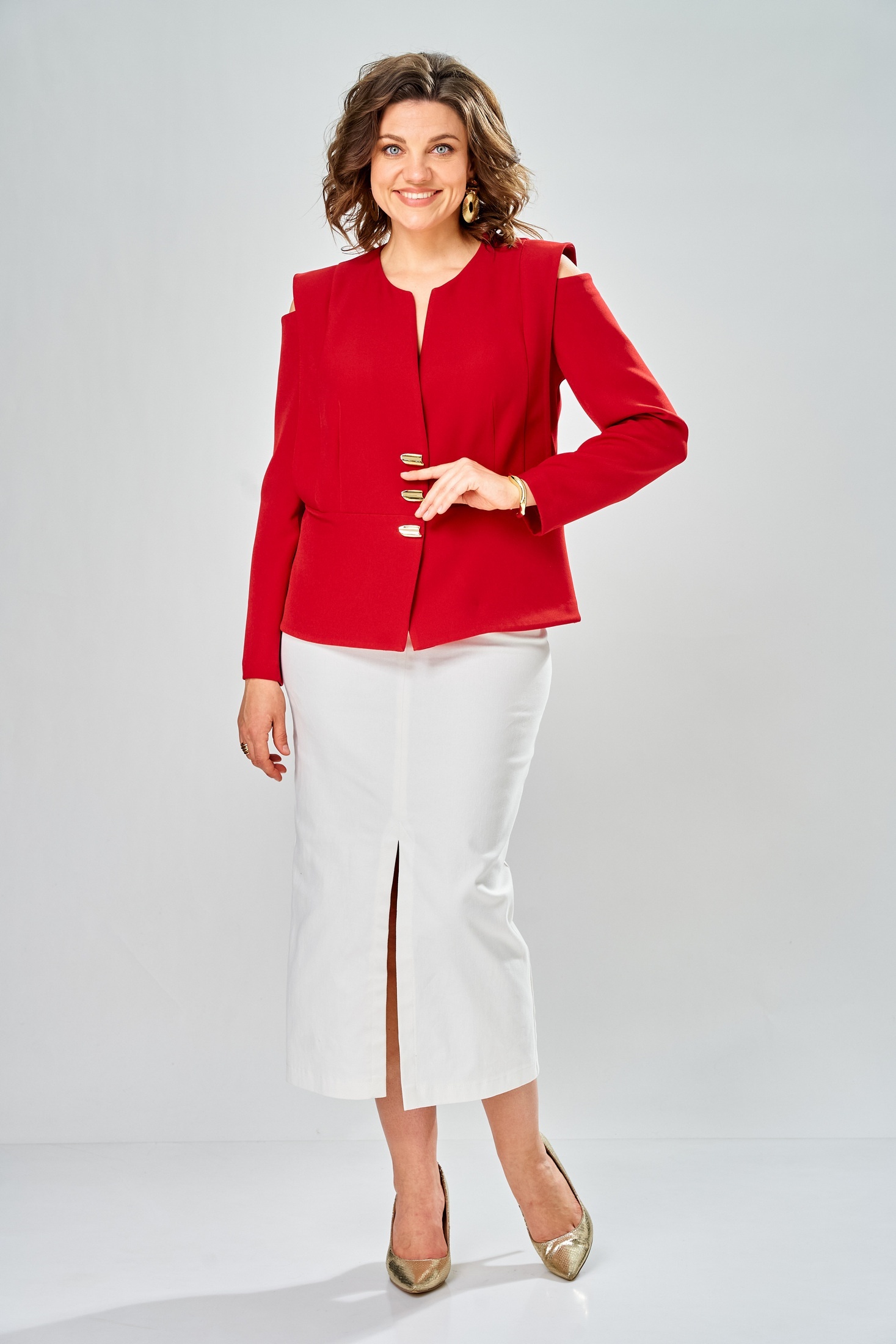 Костюм с юбкой 8060-1 красный + молоко KaVari plus size