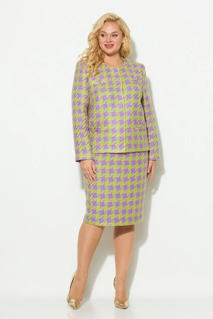 Костюм женский 2-х пр.из мягкой комфортной костюмной ткани современной цветовой гаммы, состоящий из жакета и юбки. Жакет на подкладке, укороченный, прямого силуэта, с потайной застежкой на кнопки, вырез горловины круглый , рукав длинный, на полочках листочки, украшенные декоративными пуговицами. Юбка прямая, длиной до середины колена, на подкладке, слегка зауженная к низу, сзади со шлицей и застежкой на потайную молнию в среднем шве, пояс притачной с резинкой.
