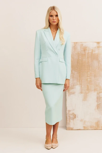 Костюм с юбкой 31005 KOKOdea - это стильное решение для вашего гардероба. Коллекция бренда KOKOdea сочетает в себе изящный полуприлегающий жакет с двубортной застёжкой на пуговицы и боковыми карманами с клапанами. Воротник пиджачного типа и подкладка добавляют элегантности, а рельефы по спинке подчёркивают фигуру. Юбка классического дизайна с удлинённым силуэтом и разрезом по спинке обеспечивает комфорт благодаря поясу на талии и потайной молнии с пуговицей. Изделие выполнено из сочетания полиэстера, вискозы и спандекса, что делает его износостойким и удобным. Светло-голубой цвет идеально подойдёт для весенне-летнего сезона и деловых встреч.