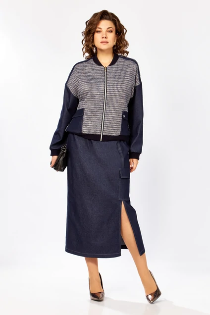 Костюм с юбкой 25103 синий Ladysecret представляет собой стильное сочетание джинсовой ткани и трикотажа, предлагая комфорт и современный дизайн. Коллекция бренда Ladysecret соединяет практичность и моду. Материал костюма состоит из хлопка с акцентом на летний сезон, идеально подходящий для повседневных прогулок. Джемпер свободного силуэта с молнией и накладными карманами дополняет образ. Прямая юбка на резинке с разрезом и декоративной отстрочкой обеспечивает комфорт и свободу движений. Синий цвет добавляет глубину и стиль, делая костюм подходящим для различных случаев.