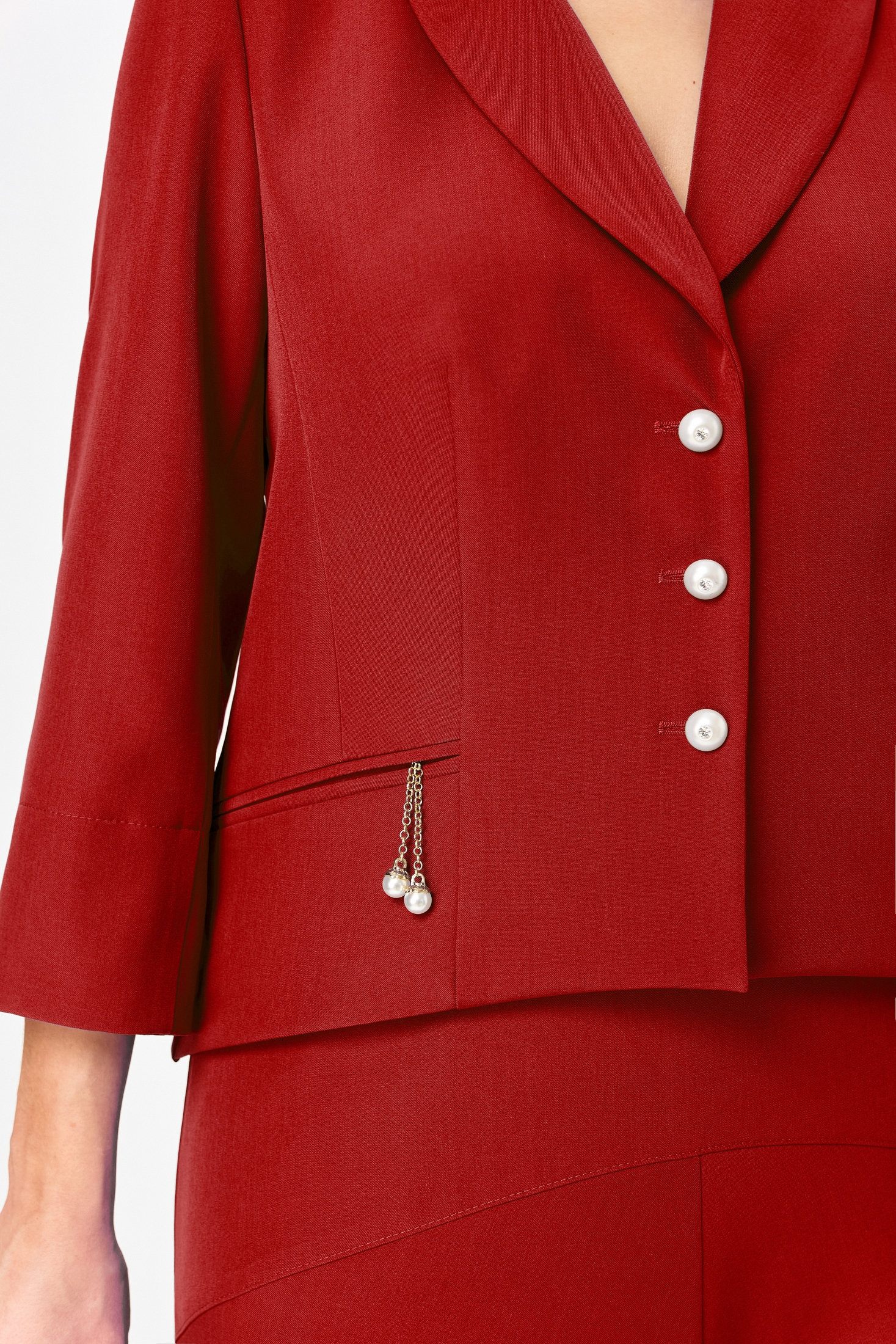 Костюм с юбкой 25106 алый Ladysecret представляет собой изысканное сочетание современности и классики. Коллекция бренда Ladysecret выполнена из полиэстера, вискозы и спандекса, обеспечивая комфорт и отличную посадку. Жакет полуприлегающего силуэта с отложным воротником и лацканами декорирован аккуратными прорезными рамками и пуговицами. Укороченный рукав с отворотом добавляет стильный акцент, а фигурный низ жакета подчеркивает оригинальность дизайна. Юбка с лёгким расклешением и кокеткой на талии подчеркивает женственность силуэта. Костюм выполнен в алом цвете, идеально подходит для осенне-весеннего сезона. Длина жакета варьируется от 60 до 63 см в зависимости от размера, длина рукава составляет 51 см, а юбки — 90 см.
