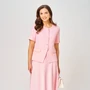 Комплект женский, состоящий из жакета и юбки. Жакет на подкладке, приталенного силуэта. По переду и спинке втачной пояс по талии и талиевые вытачки. Спинка со средним швом до пояса. Рукав втачной, двухшовный, длинный. Воротник - пиджачного типа, застежка центральная, двубортная на 2 петли и пуговицы.