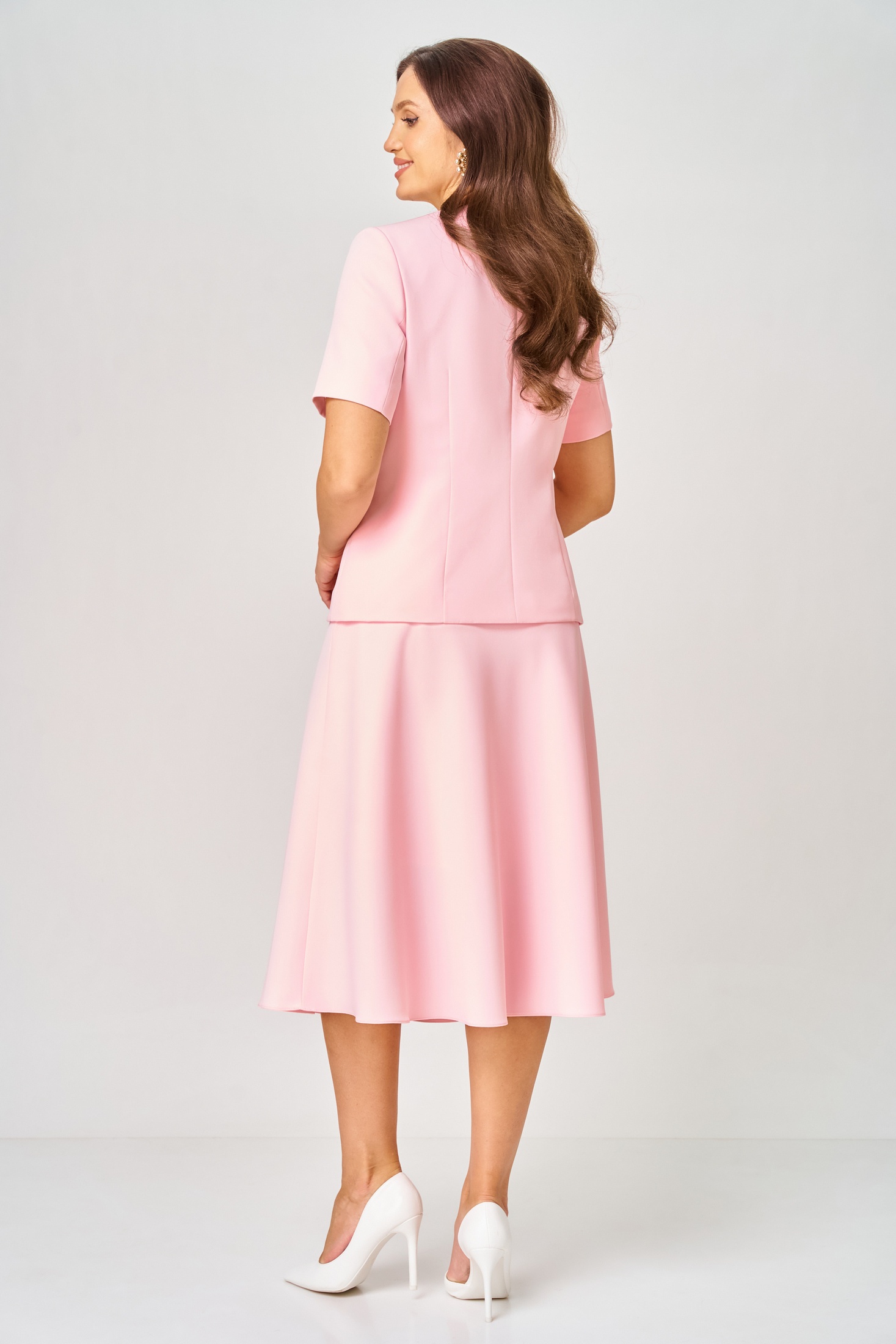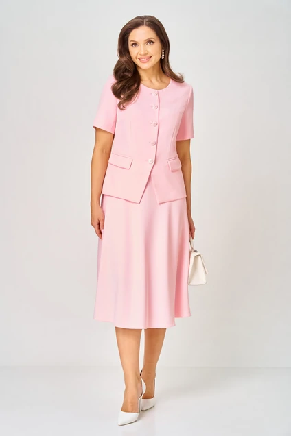 Костюм с юбкой 20505 розовый LeNata — это воплощение женственности и утончённости. Коллекция бренда LeNata предлагает комплект, состоящий из жакета и юбки, выполненных из качественной костюмной ткани. Материал отличается приятной текстурой на ощупь, износостойкостью и устойчивостью к заломам, что делает его идеальным для повседневного использования. Жакет полуприлегающего силуэта на подкладке, с прорезными карманами и застёжкой на пуговицы, дополняется круглым вырезом. Короткий рукав делает комплект подходящим для весны и лета. Юбка колоколообразной формы на подкладке, кроеная по косой, с молнией в боковом шве, подчёркивает лёгкость и комфорт. Приятный розовый цвет добавляет нежность и подойдёт как для работы в офисе, так и для торжественного случая.