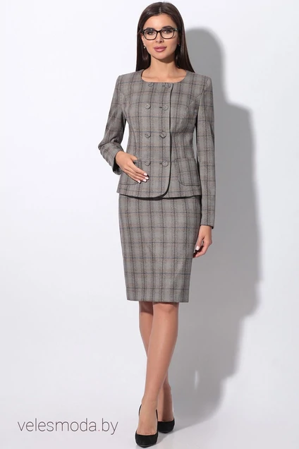 Костюм с юбкой 22915 коричневая клетка+синий+юбка в клетку LeNata