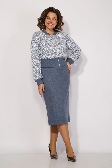 Эффектный трикотажный костюм, состоящий из кофточки-бомбера и юбки. Бомбер выполнен из мягкого, качественного трикотажного полотна с эффектом ангоры. Модель С центральной застежкой на молнию. Воротник обработан мягкой планкой. Низ с широким трикотажным поясом подчеркивает фигуру. Рукав на спущенной пройме, длинный, низ оформлен мягкой манжетой. Юбка в комплекте заужена к низу, длиной за колено. Юбка на притачном поясе с круговой резинкой. В боковых швах имеются карманы. Сзади по центральному шву обработан разрез. Юбка на трикотажной подкладке. Данная модель обеспечивает 100% посадку на любой тип фигуры! Длина кофты – 55 см, рукав – 63 см.