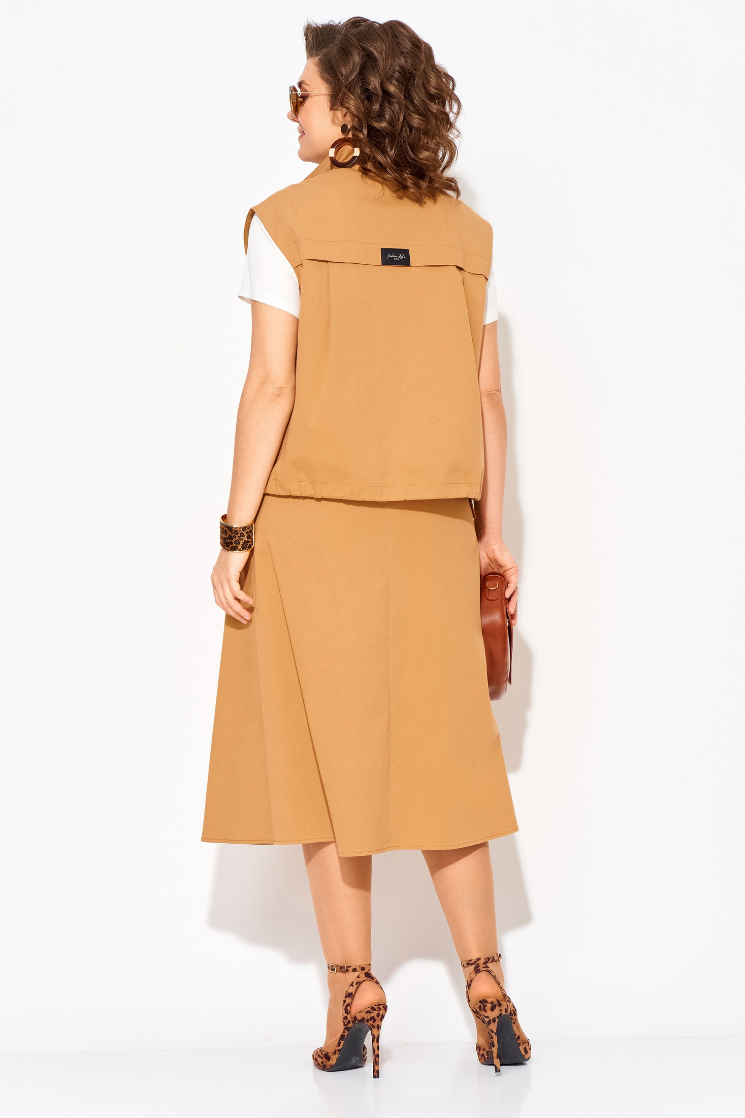 Модный женский костюм из джинсы идеально подойдет для создания стильного образа. Этот костюм включает жилетку в стиле оверсайз на юбку-А-силуэта, что делает его универсальным вариантом для повседневных прогулок! Жилетка на шелковой подкладке с боковыми карманами в рельефах. Воротник стойка с центральной застежкой на петли и пуговицы с подбортом. Низ жилетки можно присборить на кулиску. Юбка в костюме на притачном поясе, в боковых участках вставлена резинка. Юбка с накладными карманами; застежка молния в среднем шве спинки. Джинсовый костюм с юбкой — это универсальная одежда для повседневной жизни, отдыха и прогулок. Он подходит для женщин разных возрастов и типов фигур, позволяя каждой представительнице прекрасного пола выглядеть стильно и чувствовать себя уверенно. Длина жилетки – 60 см, юбка – 80 см.