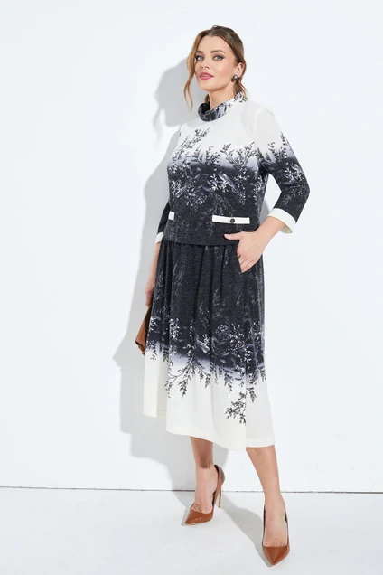 Свитшот с воротником хомут. Перед с листочками и пуговицами в нижней части. Рукава втачные с отрезными деталями по низу.
