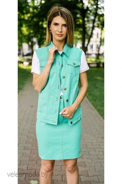 Стильный джинсовый комплект (тройка). В состав комплекта входит: жилетка, юбка и футболка с цветным принтом. Универсальный комплект отлично подойдёт для повседневной носки, а цветной принт на футболке с летними нотками придаёт яркость и лёгкость. Комплект подходит под любую обувь, спортивного, а так же классического направления. Благодаря хорошей посадке Вы будете чувствовать себя легко и комфортно.