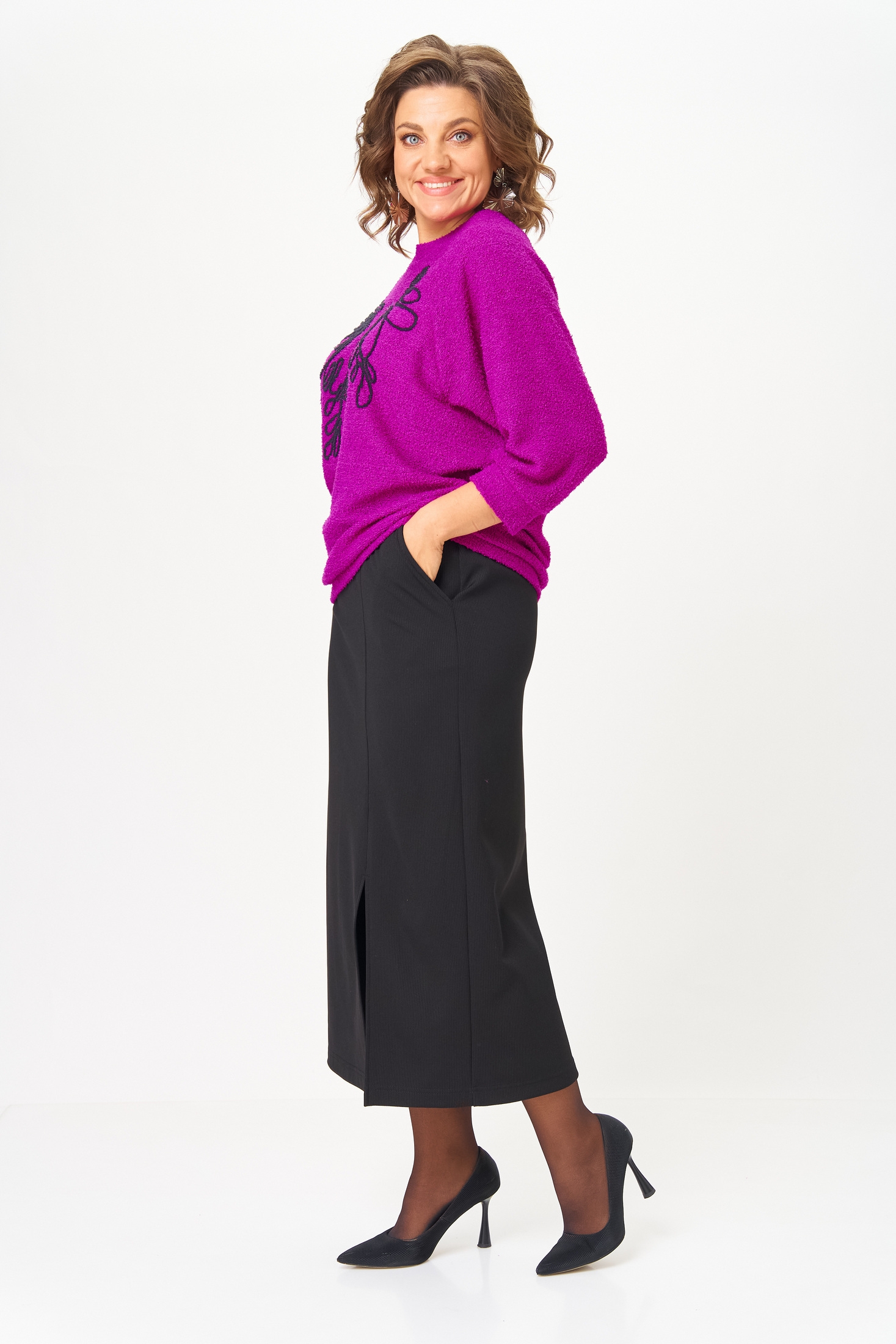 Костюм с юбкой 1407 пурпурный + черный Michel Chic