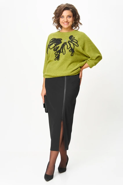 Костюм с юбкой 1407 салатовый + черный Michel Chic
