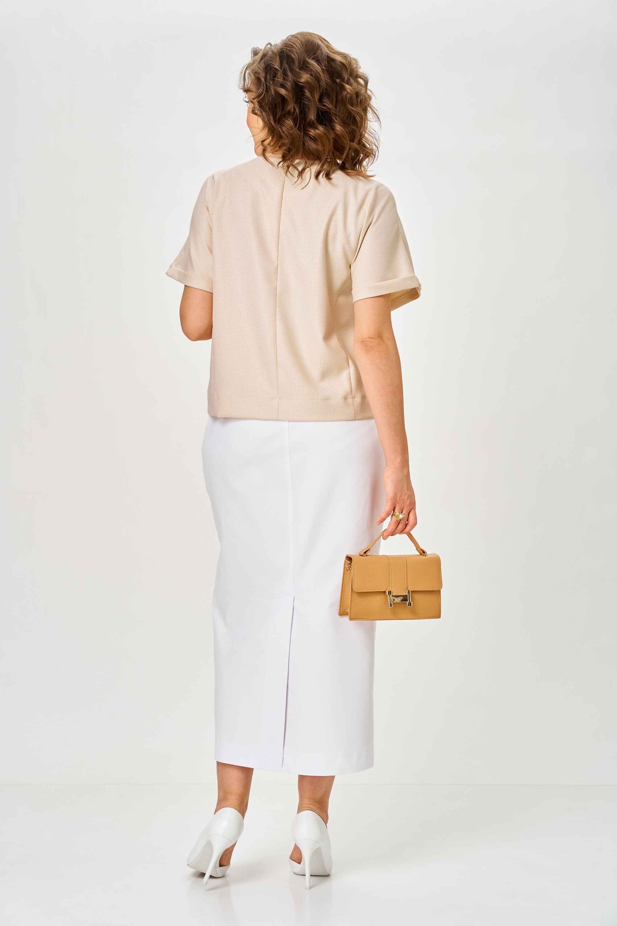 Костюм с юбкой 1422 карамель Michel Chic предлагает стильное и современное решение для любителей моды. Коллекция бренда Michel Chic сочетает в себе жакет с модным рисунком гусиная лапка в карамельном оттенке и юбку из плотного белого денима. Удобный свободный крой жакета и классическая длина миди юбки создают комфорт и зрительное удлинение силуэта. Этот костюм легко адаптируется для различных ситуаций, будь то повседневная прогулка или более формальный выход. Жакет из полиэстера дополняет образ, обеспечивая дополнительное удобство, а юбка из хлопка держит форму. Длина жакета по спинке — 55 см, юбка — 94 см, создаёт идеальную посадку на рост 170 см. Великолепная палитра цветов делает этот комплект универсальным и подходящим для любого времени года.