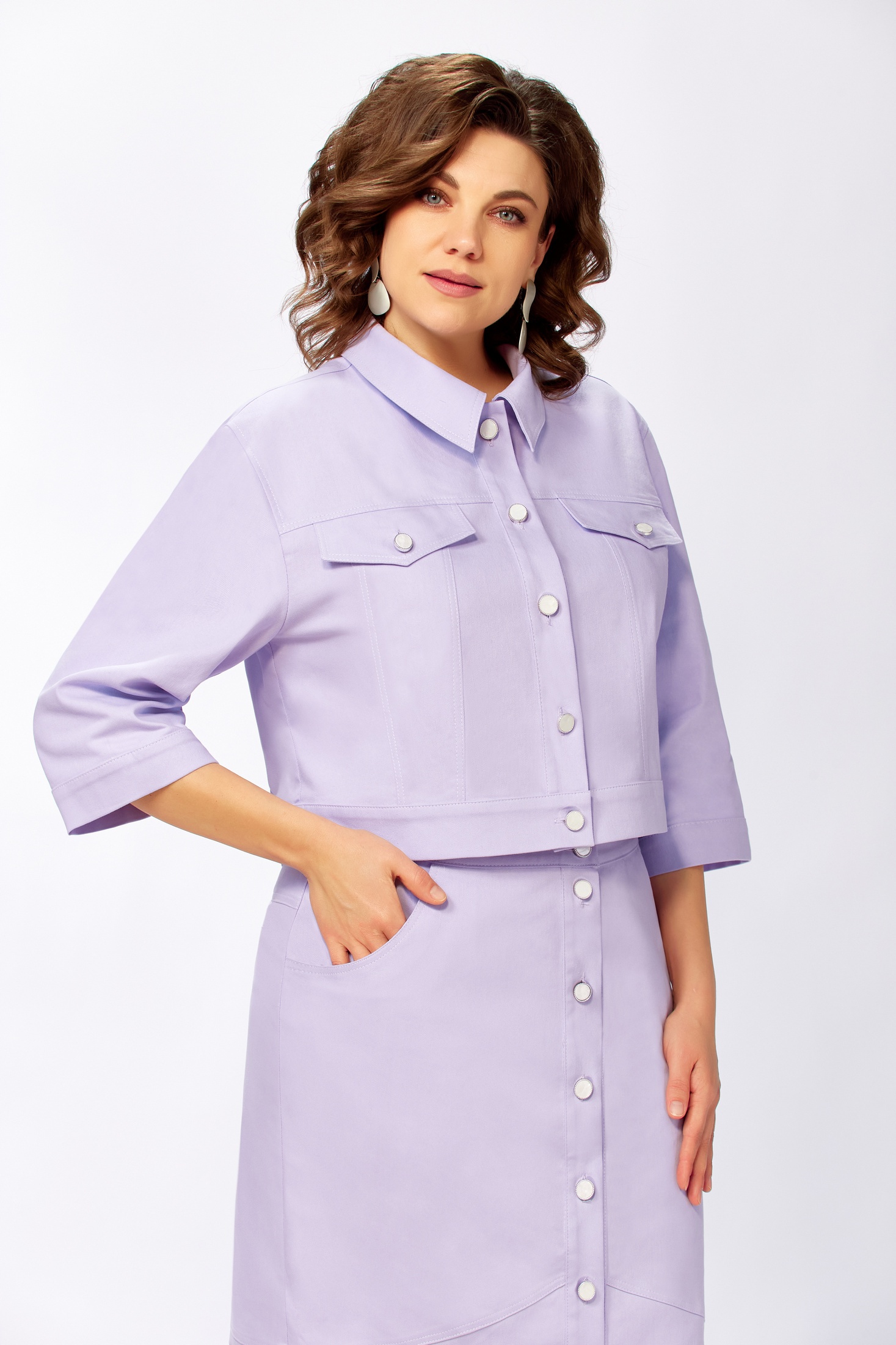 Костюм с юбкой 5541-3 Mira Fashion — воплощение современной классики. Коллекция бренда Mira Fashion предлагает универсальный комплект из куртки и юбки, выполненный из прочного однотонного джинса. Этот стильный наряд, идеальный для повседневной носки, подчеркнут классическим фасоном джинсовки с втачным воротником и планкой на пуговицах. Длина куртки составляет 48 см, юбки — 86 см, что гарантирует удобство и практичность. Боковые карманы добавляют функциональности, а цветочный оттенок придаёт женственности. Длина рукава 3/4 обеспечивает комфорт в прохладное время года, делая костюм подходящим для весны и осени.
