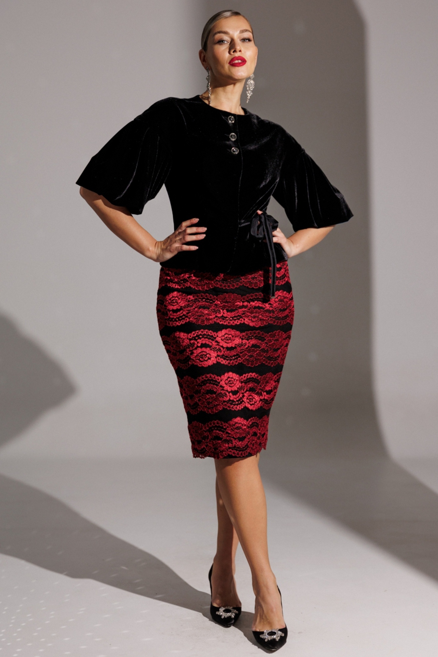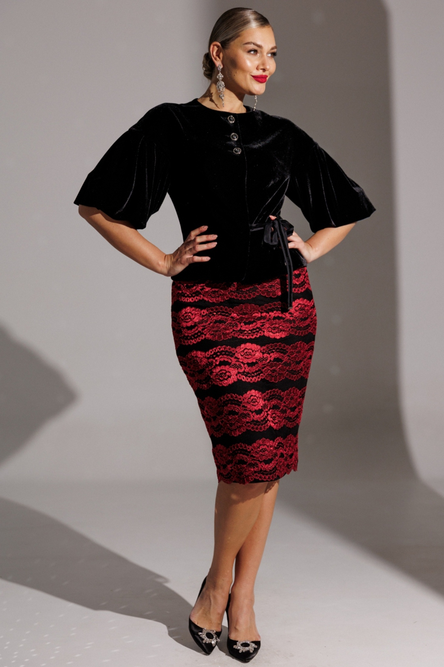 - Красные юбочные костюмы больших размеров