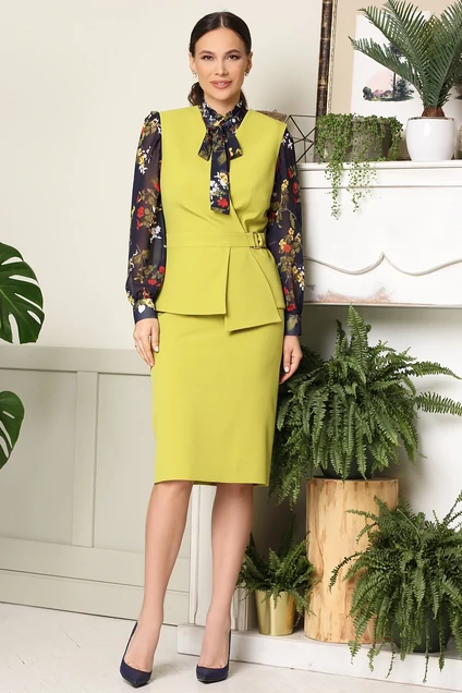 Костюм с юбкой 2538 гороховый+темно-синий Мода-Юрс