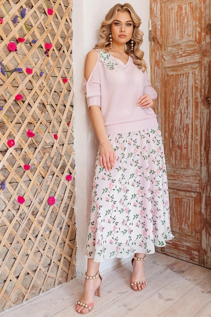 Костюм с юбкой 2814 нежно-розовый Мода-Юрс