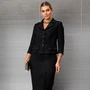 Что делает образ женственным и романтичным? Конечно же силуэты, подчеркивающие женскую фигуру, а также такие ткани как органза, шелк, шифон. Дизайнеры бренда "МОДА-ЮРС" предлагают Вам новинку - жакет из шерсти со съемным шарфом . Данная модель смотрится очень стильно и женственно. Такой жакет может стать основой многих образов. Смело сочетайте его со своими праздничными и деловыми блузами. Жакет полуприлегающего силуэта. По переду и спинке с талиевыми вытачками, на полочках обработаны карманы. Спинка со средним швом. Рукава втачные, двухшовные, сверху по окату со складками. Застежка центральная на петли-пуговицы. Жакет декорирован съемным шарфом, нижняя часть которого застегивается на петли-пуговицы. Юбка прямая, зауженная к низу, сверху на притачном поясе, по бокам с резинками. Застежка на тесьму-молнию в среднем шве, который переходит в шлицу. Длина жакета: 65 см длина рукава: 62 см длина юбки: 70 см
