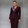 Безупречный силуэт, внимание к деталям - главные ценности бренда "Мода-Юрс", которые нашли отражение в костюме из жаккарда в полоску с акцентной брошью. Жакет прилегающего силуэта с рельефами по переду и спинке. Спинка со средним швом. Отрезная по линии талии. Рукав втачной, одношовный со складками по окату.