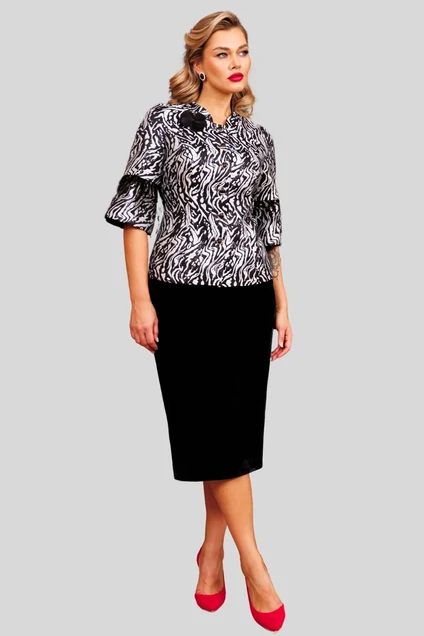 Костюм с юбкой 2859-1 серебро + зебра Мода-Юрс