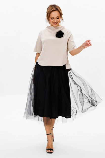 Костюм с юбкой 137 бежевый + короткий рукав Мублиз