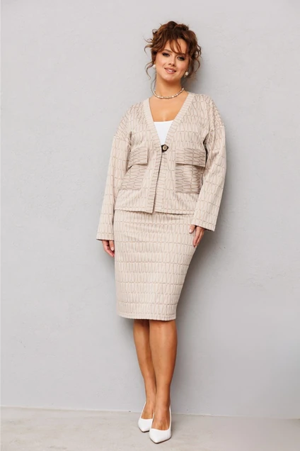 Костюм женский, состоящий из жакета и юбки, выполненный из трикотажного полотна (тянется).