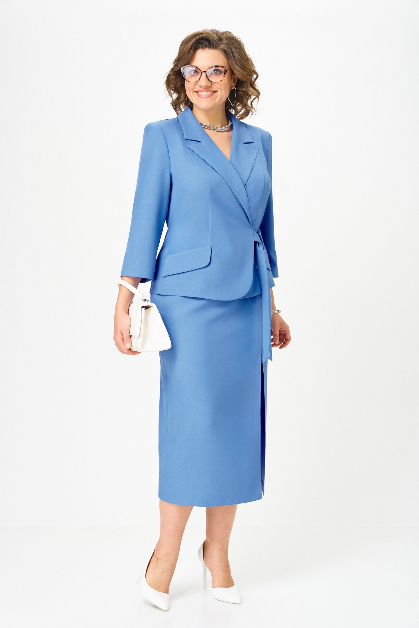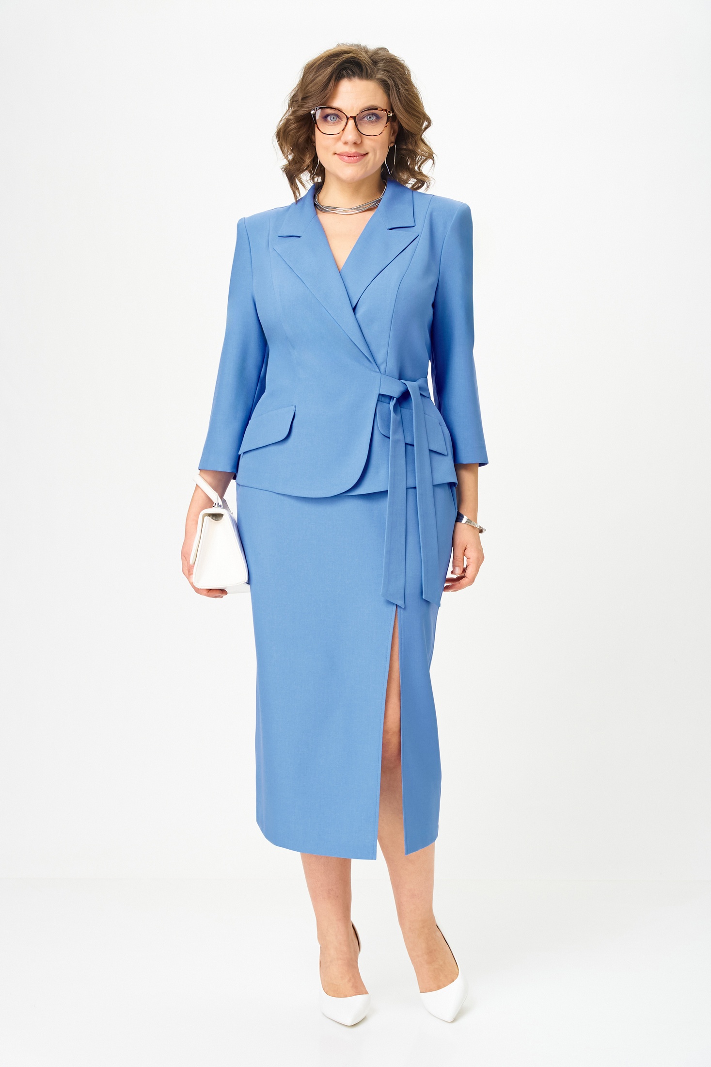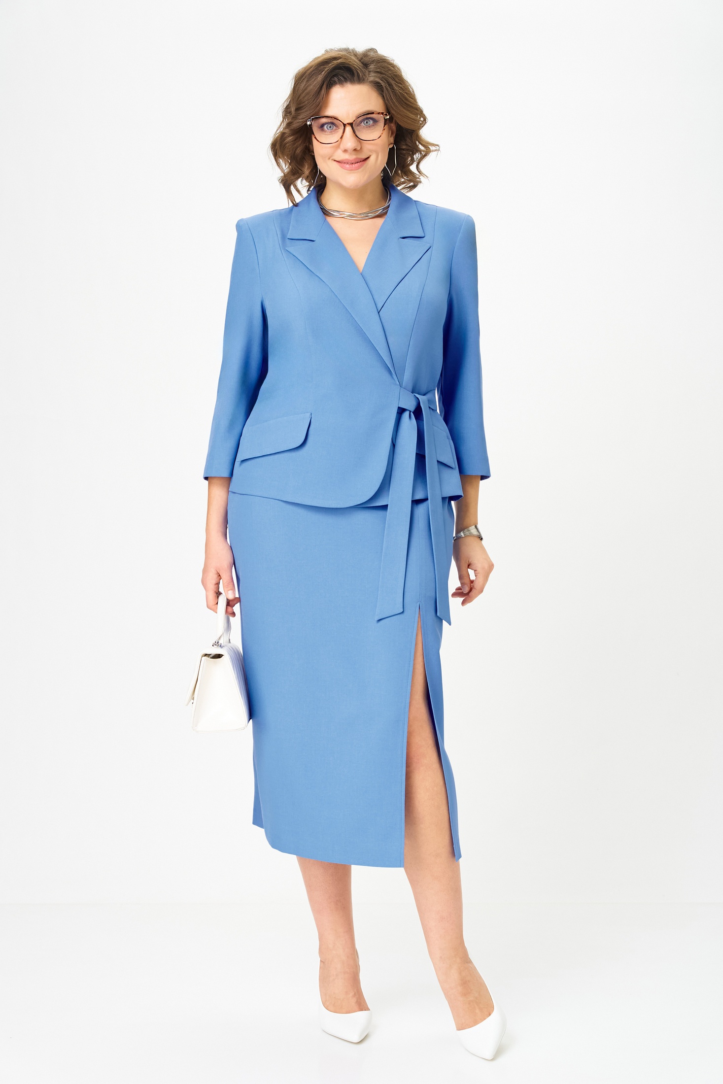 Костюм с юбкой 1658 N.O.W. — элегантный выбор для делового гардероба. Коллекция бренда N.O.W. предлагает комплект из жакета и юбки, выполненный из однотонной костюмной ткани. Полуприлегающий жакет с двубортной застежкой и поясом дополнен воротником пиджачного типа и ¾ рукавами. Длина по среднему шву спинки составляет 60-62 см. Юбка длинная, зауженная книзу, с разрезом по переду и потайной молнией на заднем полотнище, выполнена на подкладке. Комплект идеально подходит для офисного и делового стиля и добавит утонченности вашему образу. Этот костюм в небесно-голубом цвете — универсальный выбор для прохладного времени года.