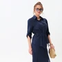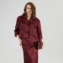 Костюм двухпредметный: состоит из джемпера и юбки. Джемпер-кейп прямого свободного силуэта. Горловина с цельнокроеным воротником-стойкой. Рукав втачной широкий, от линии локтя до запястья есть дополнительное отверстие для рук. Декорирован цветком из контрастной ткани. Юбка - солнце с узким поясом. В боковых швах расположены карманы. Застёжка на петлю и пуговицу и молнию по спинке.