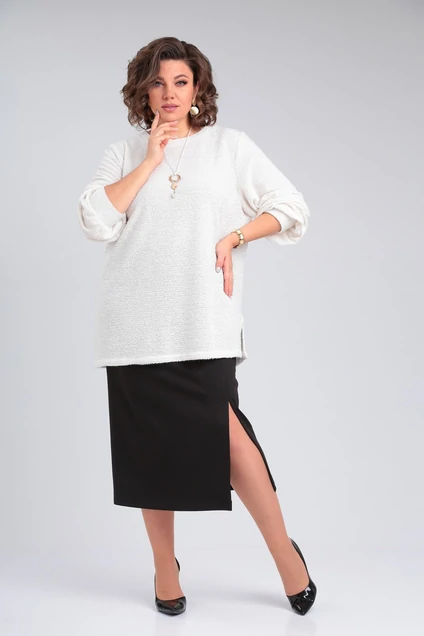 Невероятно комфортный, нарядный трикотажный комплект состоит из джемпера и юбки. В комплекте идет красивый кулон в золотистом цвете на вощеном шнуре. Джемпер свободного покроя с круглой горловиной. Рукав втачной, полномерный по обхвату, со сборкой на манжете. Для удобства в боковых швах разрезы. Юбка прямого кроя, с высокой посадкой. Пояс притачной на резинке. В боковом шве молния и петля-пуговица. Оригинальный разрез по переду придает образу игривость. Оригинальный юбочный комплект oversize благодаря качественным лекалам хорошо садится по фигуре, не мнётся, удобен для особых случаев и прекрасно выглядит! Ткань хорошо тянется и это позволяет вам комфортно себя чувствовать. Комплект подойдет для прогулки, встречи с друзьями. Вы с удовольствием оцените крой и удобство комплекта.