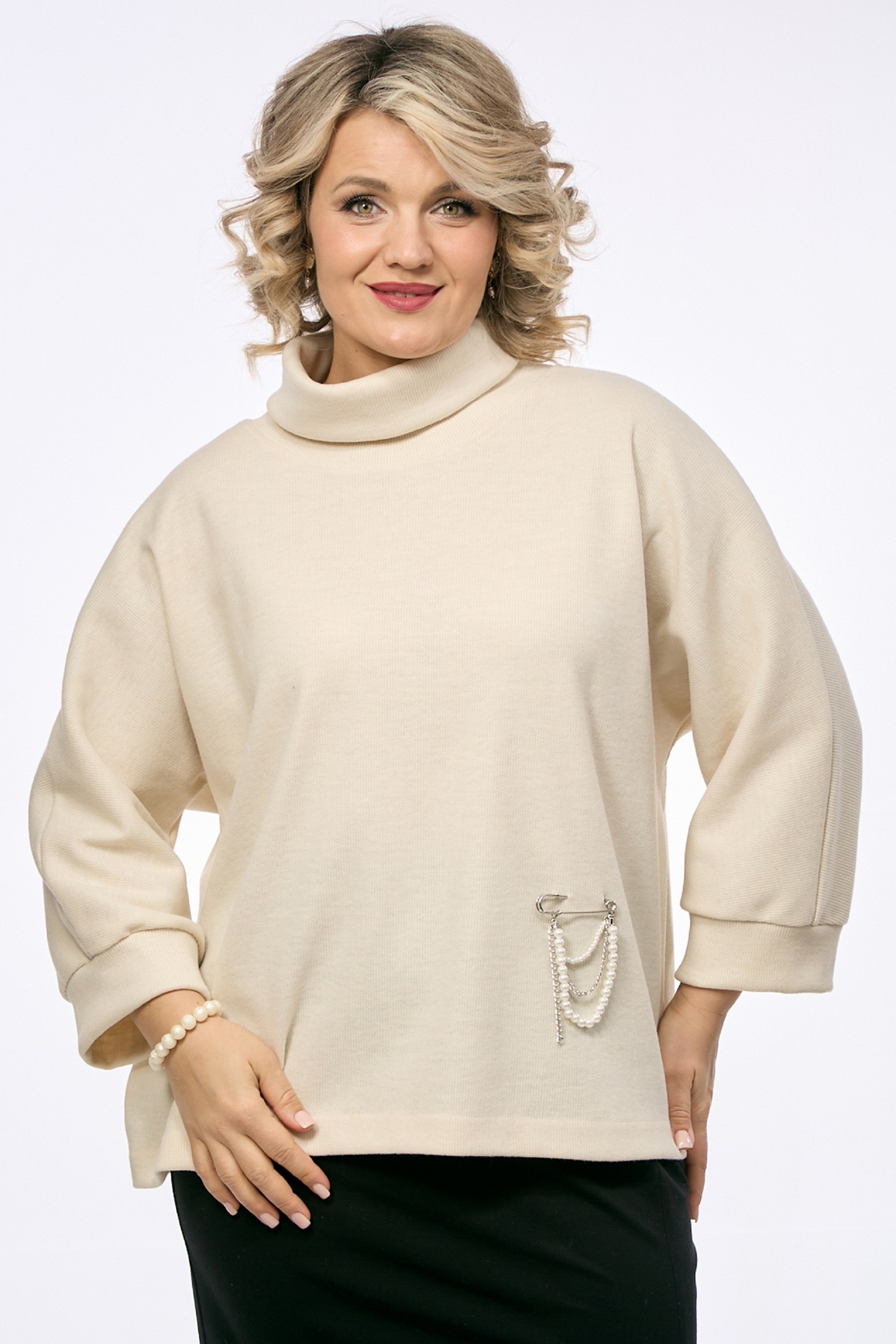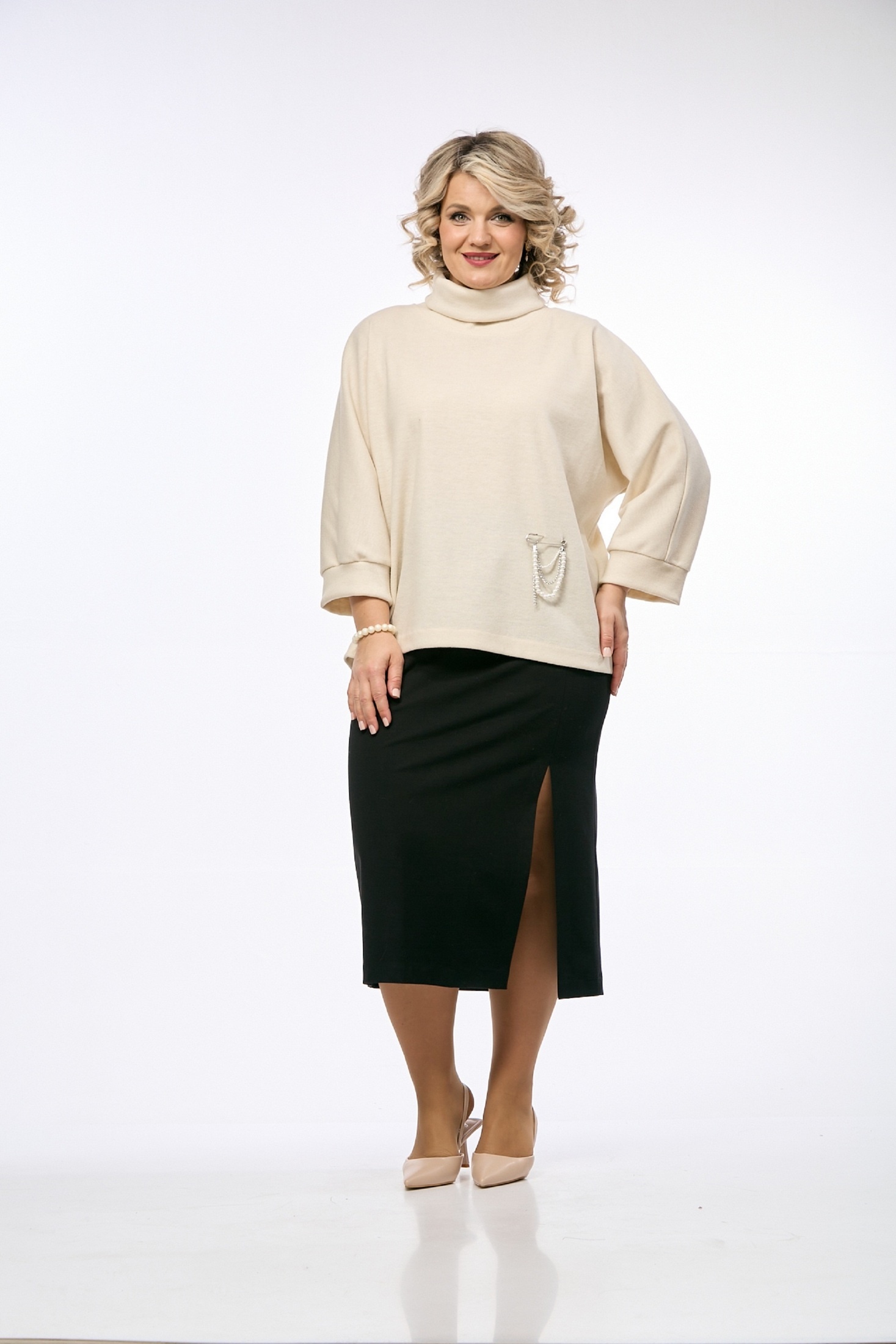 Костюм с юбкой 234 OVERYOU идеально сочетает в себе комфорт и стиль. Коллекция бренда OVERYOU включает в себя удобный трикотажный комплект из джемпера и юбки, выполненных из полиэстера и вискозы, что обеспечивает мягкость и эластичность материала. Элегантный джемпер свободного кроя с воротником «хомут» и рукавом «летучая мышь» обеспечивает свободу движений. Прямой крой юбки с высокой посадкой и разрезом спереди добавляет изюминку. Съемная брошь из бусин и цепочек легко изменяет образ. Пояс на резинке и молния в боковом шве делают его универсальным. Этот костюм универсален для встреч с друзьями или прогулок прохладной осенью, а кремовый и черный цвет позволяют легко сочетать его с другими вещами.