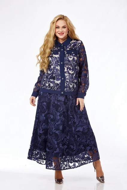 Костюм с юбкой 5125-3 синий Pretty