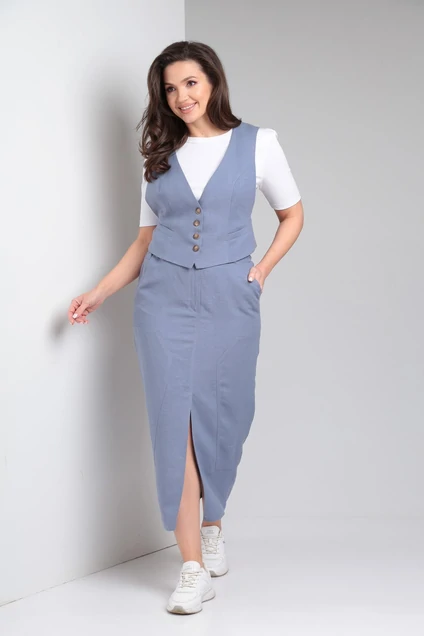Юбка и жилетка - прекрасная инвестиция в базовый гардероб. Ткань лён с вискозой идеальная для лета. Юбка прямого кроя, с застежкой на молнию и пуговицу. В боковых швах карманы для удобства. Подрезные детали по бокам юбки предают индивидуальность и удлиняют силуэт. Высокий разрез по центру юбки - для удобства при широком шаге.