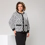 Костюм женский, предназначен для повседневной носки. Костюм женский 2-х предметный джемпер и юбка. Джемпер женский, прямого силуэта, длиной до линии бёдер с фигурным низом. Перед с одной нагрудной вытачкой с отрезным бочком слева, шов соединения бочка с передом заканчивается шлицей, декорированной 3-мя пришивными пуговицами. Спинка цельнокроеная. Горловина круглая с втачной планкой-стойкой из отделочной ткани. Рукав втачной, длинный, одно шовный, низ с лёгкой сборкой и притачной манжетой из отделочной ткани. Джемпер с плечевыми накладками. Юбка женская, слегка заужена к низу, длиной до нижней части икры. Переднее и заднее полотнище цельнокроеные. Боковые швы с разрезами. Юбка с притачным поясом, собранным на эластичную тесьму. Юбка на подкладке. Длина юбки по боковому срезу 87 см. Длина спинки джемпера 60 см. Длина рукава 59 см.