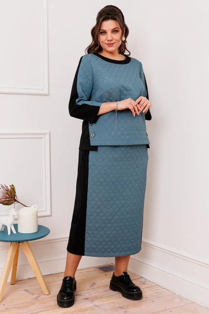 Костюм с юбкой 2-2771 чёрный + бирюза Romanovich style