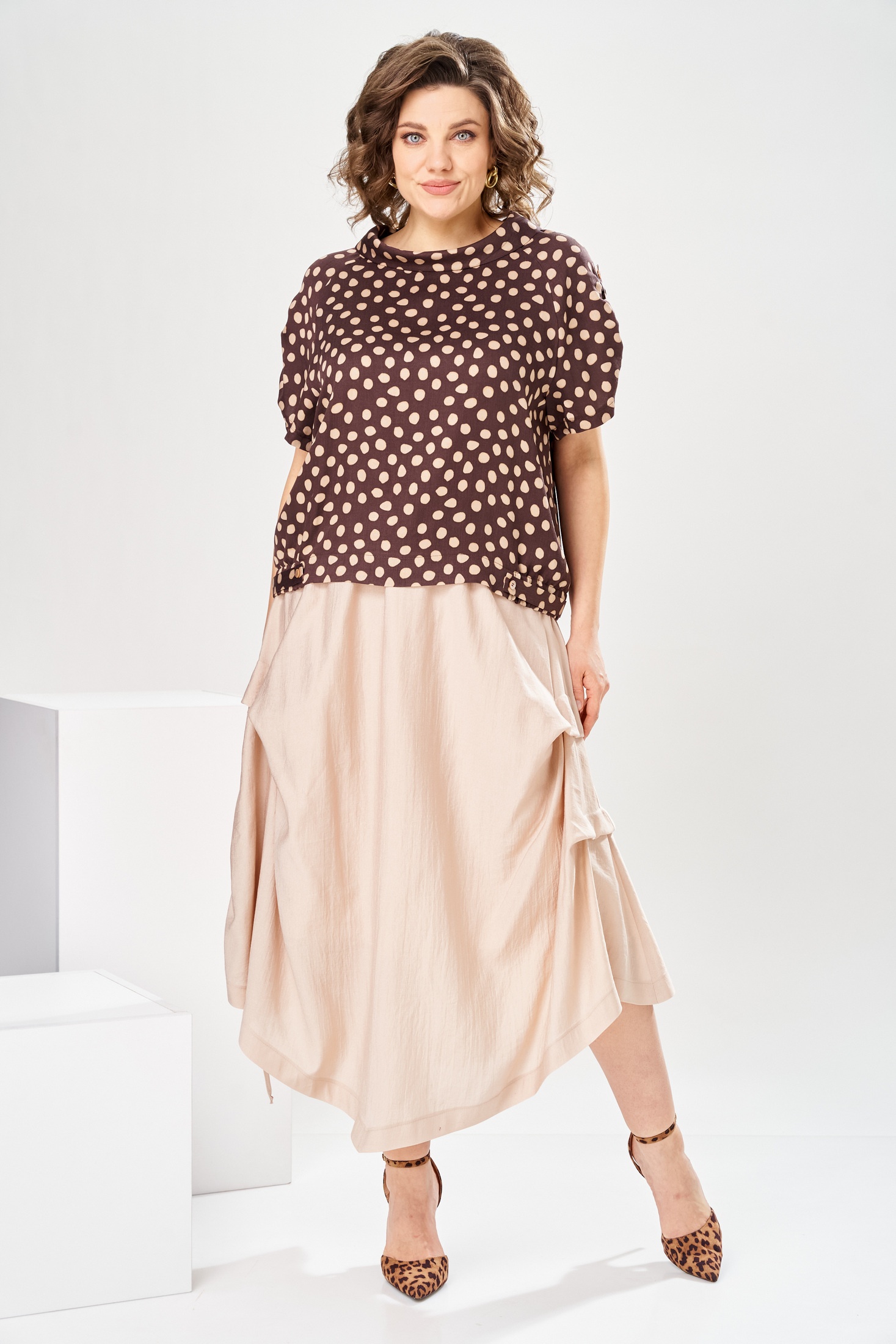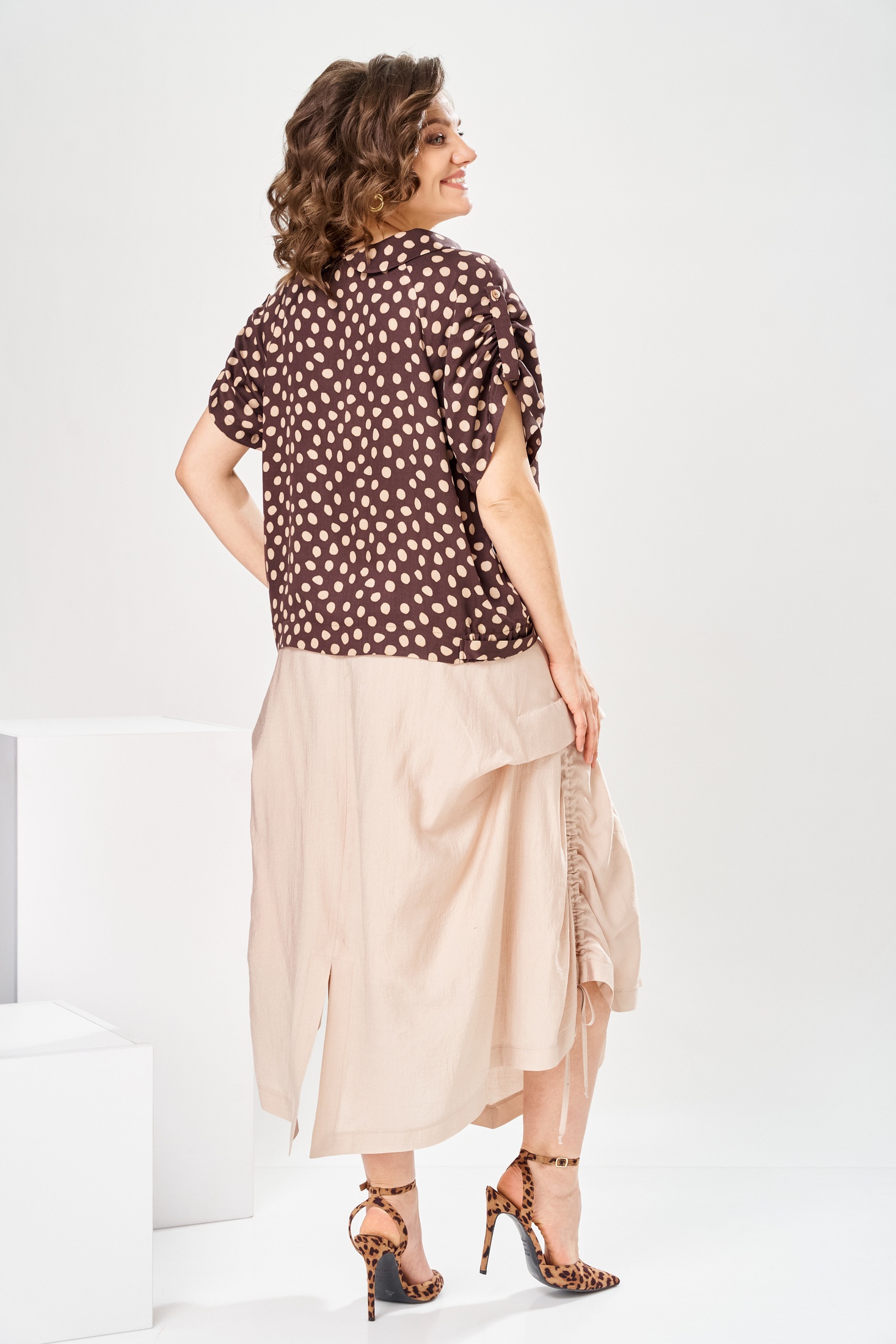 Костюм с юбкой 2-2916 Romanovich style предлагает уникальное сочетание моды и комфорта. Коллекция бренда Romanovich style отличается своим особым взглядом на женственность. Изготовлен из качественной вискозы, этот костюм обеспечивает легкость и воздушность. Прямой силуэт блузки с коротким рукавом декорирован эластичной тесьмой и настрочными хлястиками, что подчеркивает современный стиль. Юбка расширенная к низу с фигурным подолом и модными складками придаст вам особый шарм. Нейтральные оттенки и эластичный пояс делают этот костюм подходящим для летнего гардероба, идеально подходящим для повседневного использования. Комфорт и стиль объединены, благодаря удачному выбору материалов и дизайна.