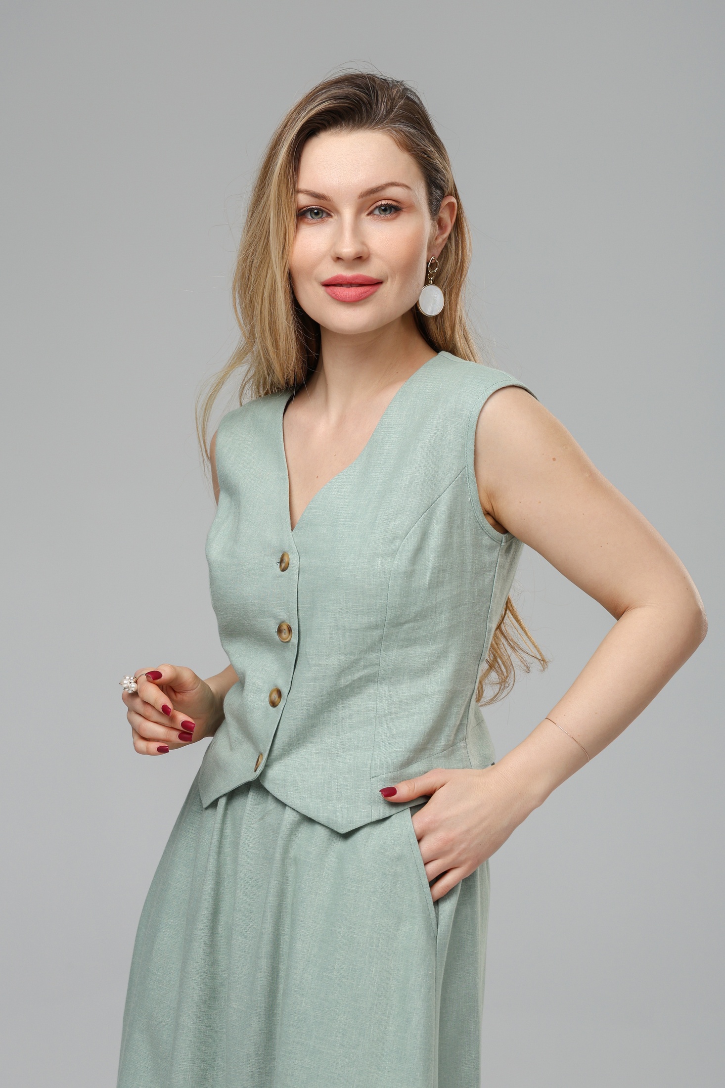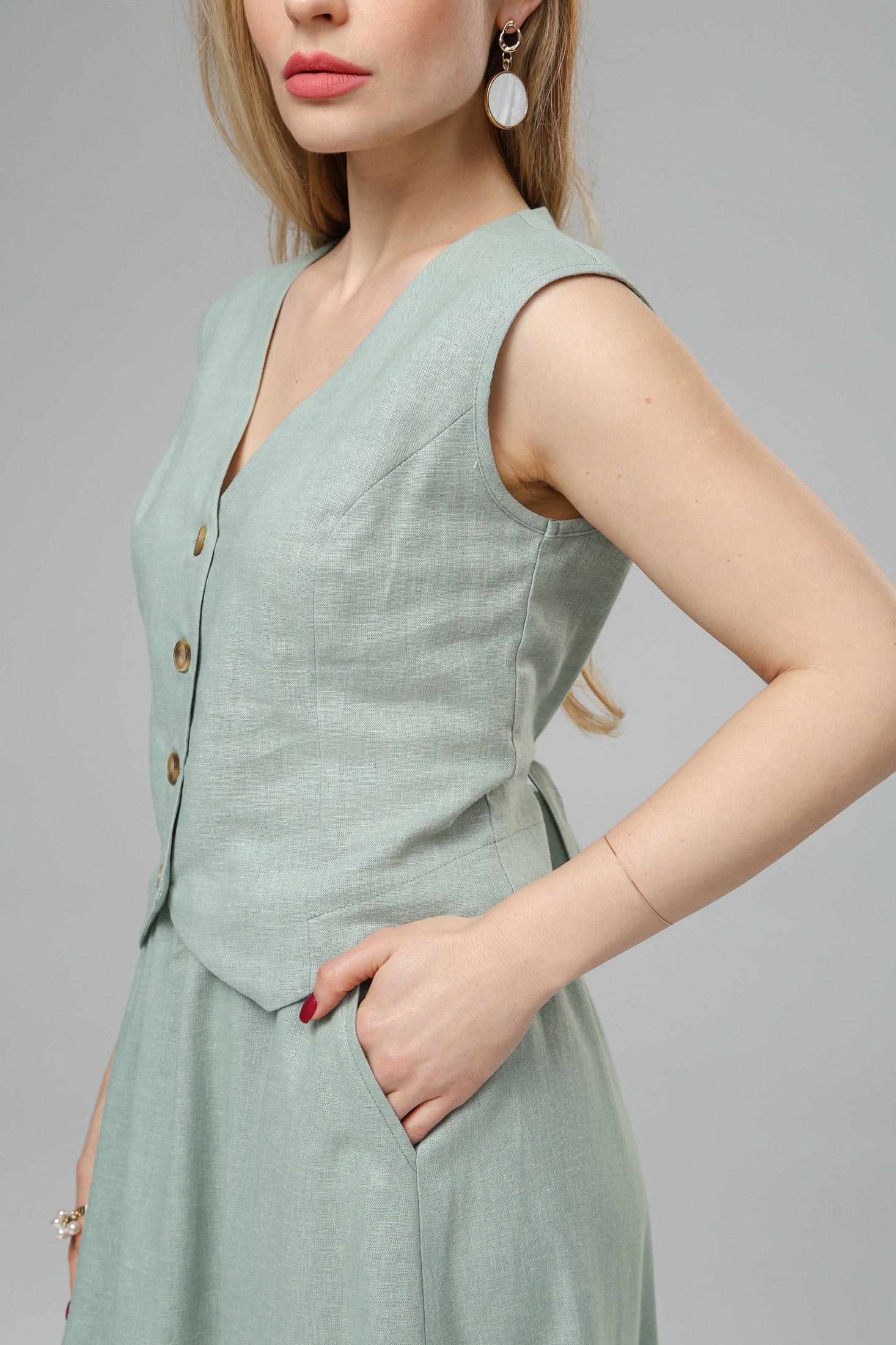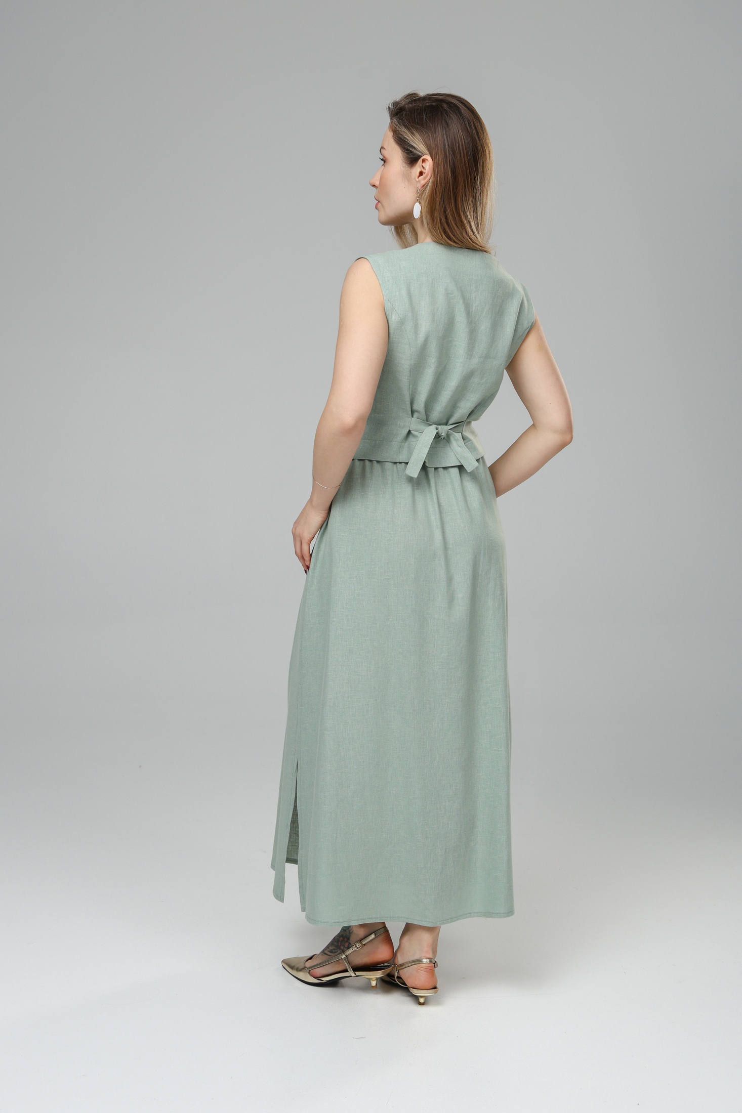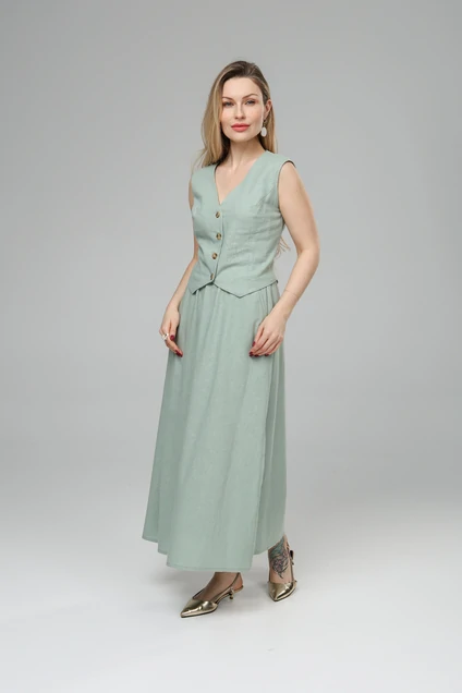 Костюм с юбкой РТ0146-ЛВ4 светлая полынь Romgil представляет собой стильный ансамбль для современных женщин. Коллекция бренда Romgil воплощает сочетание натуральных тканей и модного дизайна. Костюм выполнен из льна и вискозы — материала, который отличается лёгкостью и способностью дышать, обеспечивая комфорт в течение всего дня. Блузка с V-образным вырезом и пуговицами добавляет романтичности образу, а юбка-макси с высоким поясом подчёркивает женственность и лёгкость. Светлый оттенок полыни делает костюм универсальным для лета, идеально подходящим для офиса, встреч или прогулок на свежем воздухе. Этот комплект легко дополнить аксессуарами для создания как строгого, так и расслабленного образа.