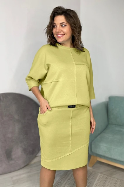Юбка женская прямого силуэта из трикотажной ткани.По переду расположены карманы с настрочными швами с открытыми срезами.