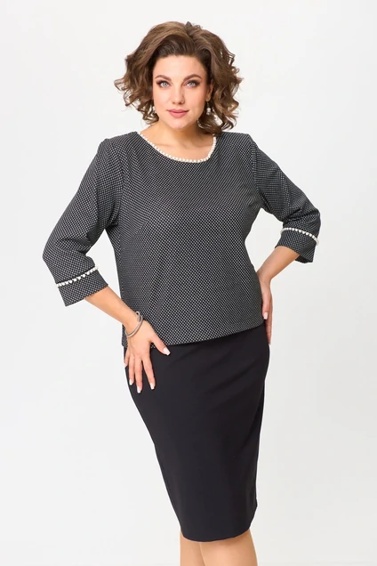 Элегантный женский костюм состоящий из блузы и юбки. Блуза из трикотажного полотна прямого силуэта с нагрудными вытачками. Рукав втачной 3/4,